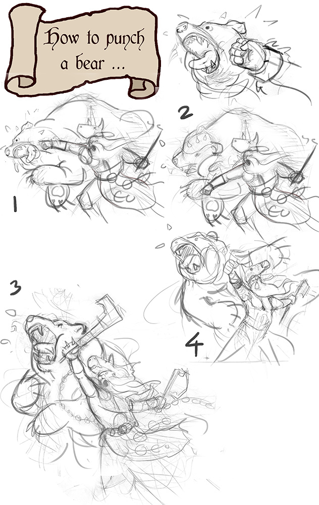 Okay, I've killed a unicorn, so let's continue the animal theme and have old Bardi punching a grizzly bear in the face!