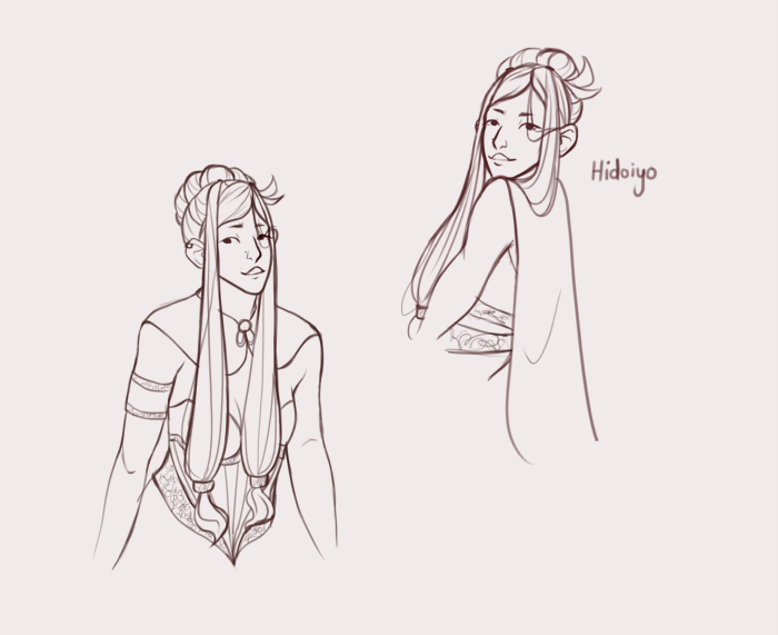 I did a few sketches, just trying to figure out just some sort of general idea of what she may look like. I've never started out like this before so it was pretty fun to give it a go. There was one that stood out to me more than the others so I decided to work into it. (The examples below are where I worked into it.)