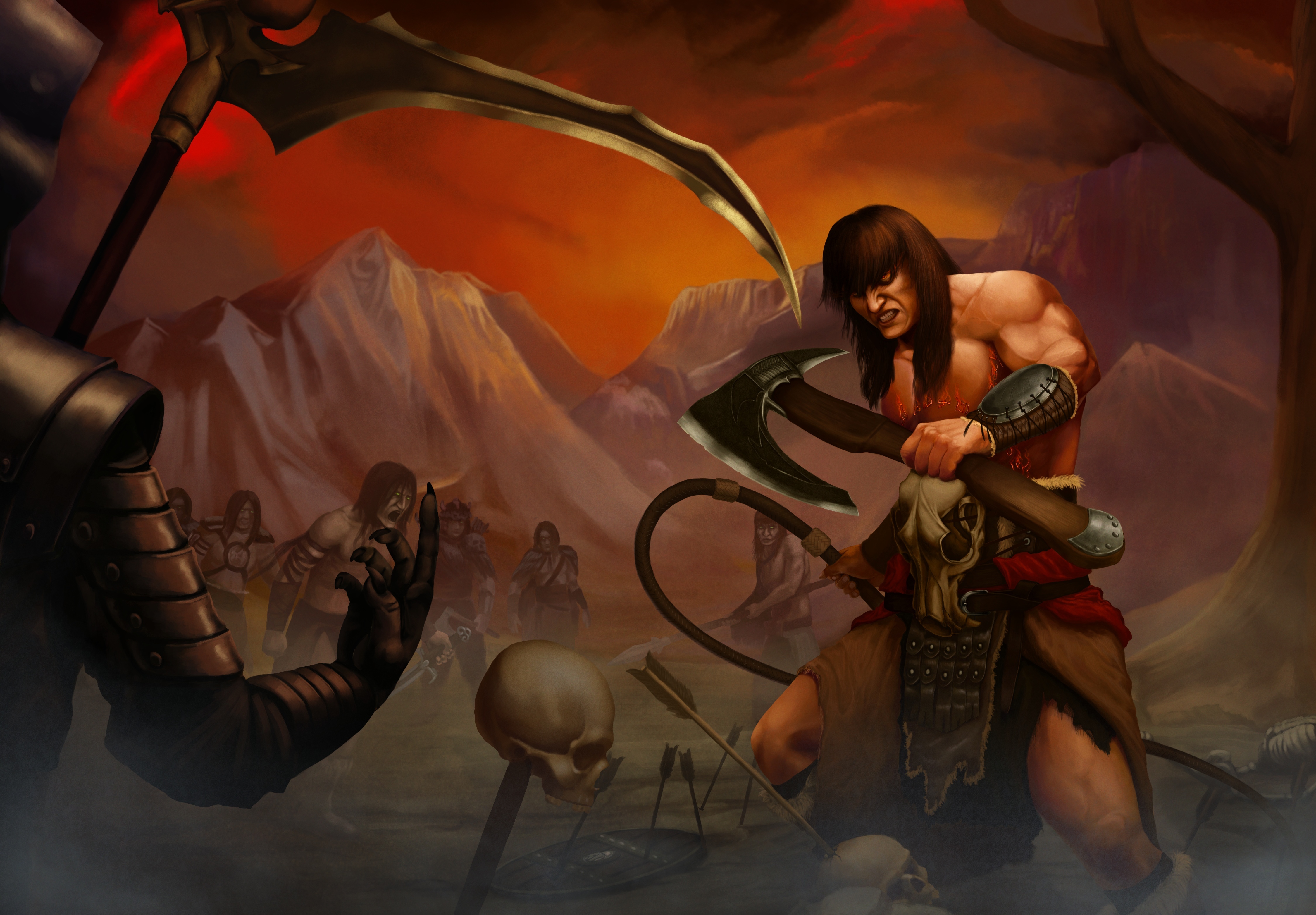 He is not Conan, although he looks like him. But I think all barbarians are like Conan. As for the reaper, I wouldn't be too sure about that. Reaper takes the living, but does not quicken the dead. About his image, I was just associated it with the title.
