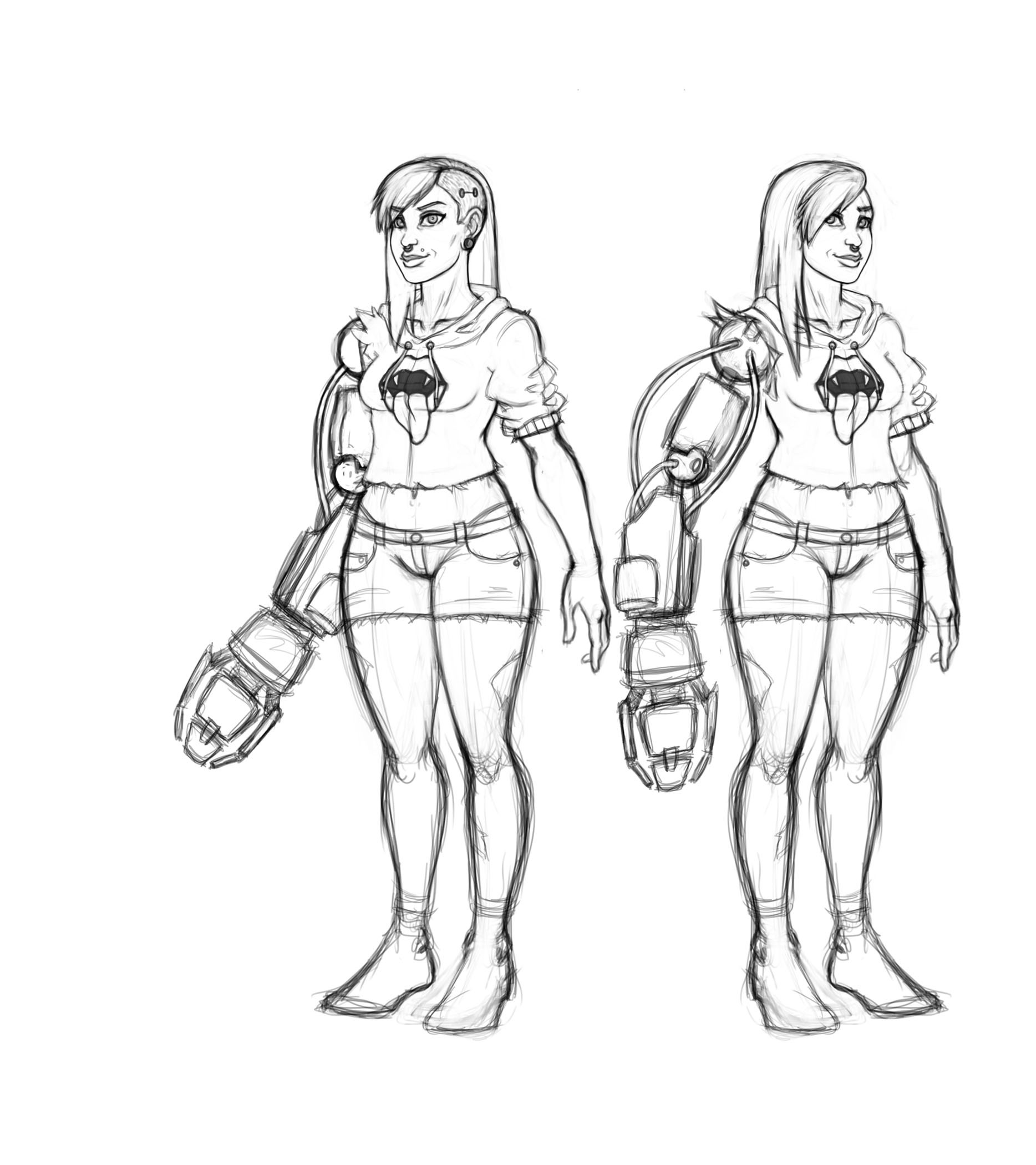 First character ref sheet. Really love the particualr hairstyles here even though some may its too much. Also a really huge fan of Matteo De Longis and Brosa. So attempting something similar to their styles......( I hope lol) Below are my first initial sketches. Really need to dig into the mech arm on the next batch of concepts....