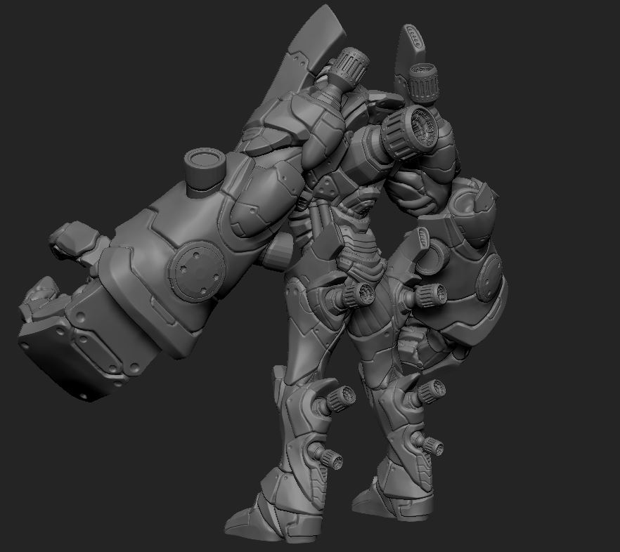 I hope I'm not too late to get started on the challenge. My champion is a sci-fi fighter which uses huge arms to fight. He has energy propulsors on shoulders and elbows to enhance his punching power. His arms can also shield him and his fighting style is like a stylized boxer. I still need to think on the details, so far I've been working on the shape and how I feel him.