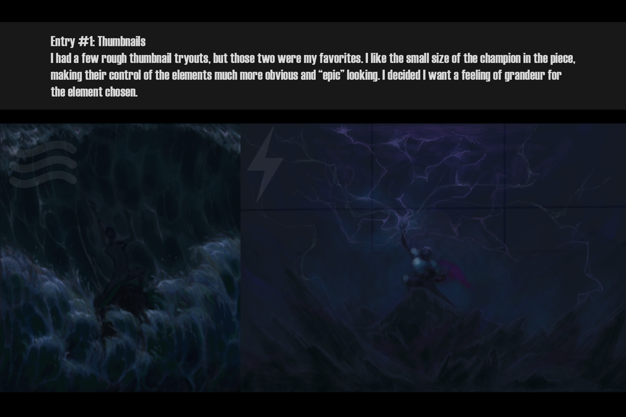 I also added birds for scaling, and I'll be adding pillars from which my champion will be standing on top of, to once again reinforce the height/strength of the waves.