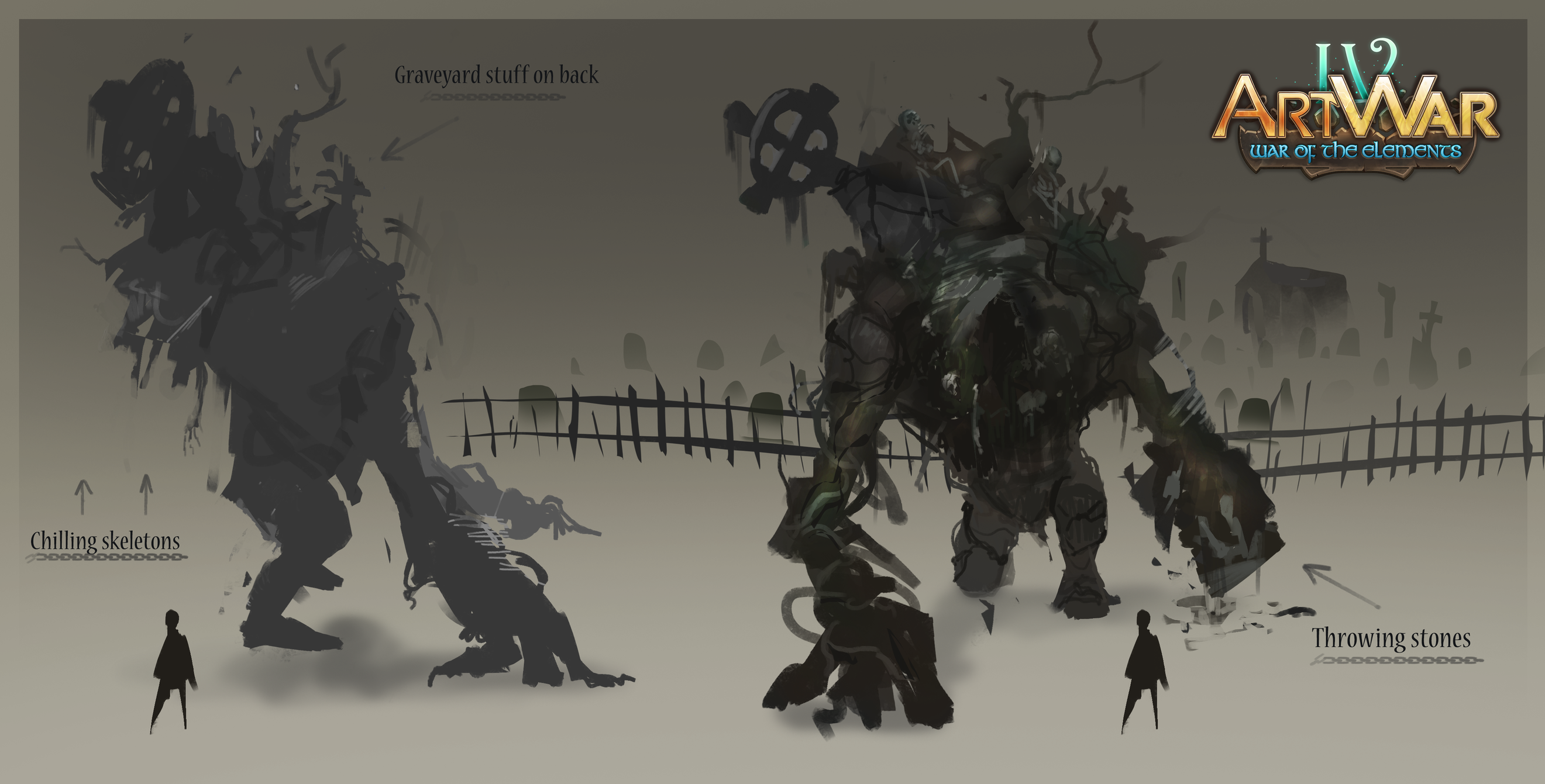 Here is really fast and ugly concept, so i have the basic idea what type of character i want in my final illustration. This should be some kind of earth type of creature, summoned from the ground of graveyard and using stones/graves as a throwing weapon.