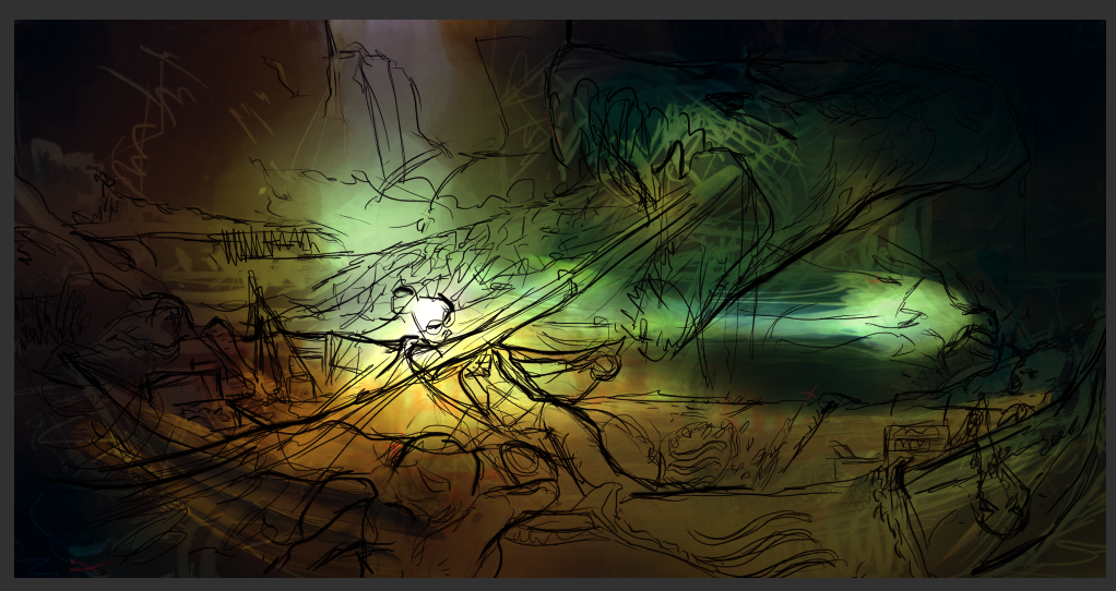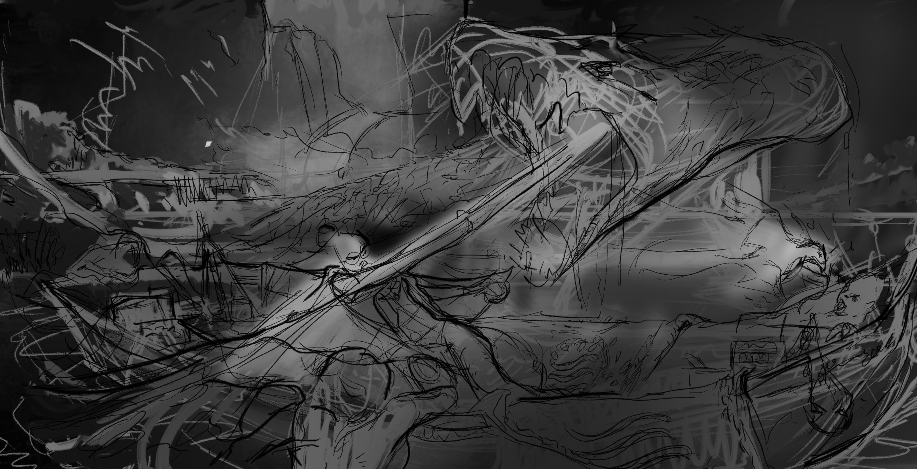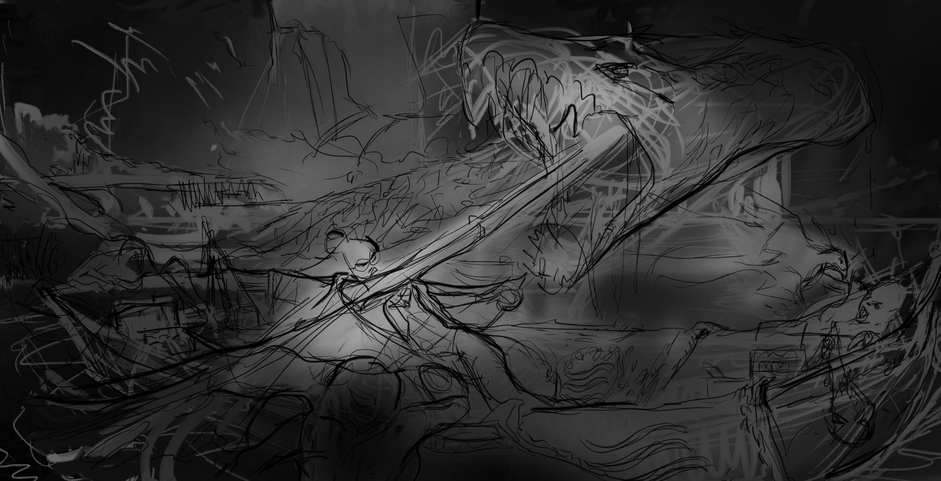 but here's a quick doodle of my composition. Rn, I'm thinking of shape arrangement; how do I want to balance the objects within the composition out in order to tell both a functional and captivating story.