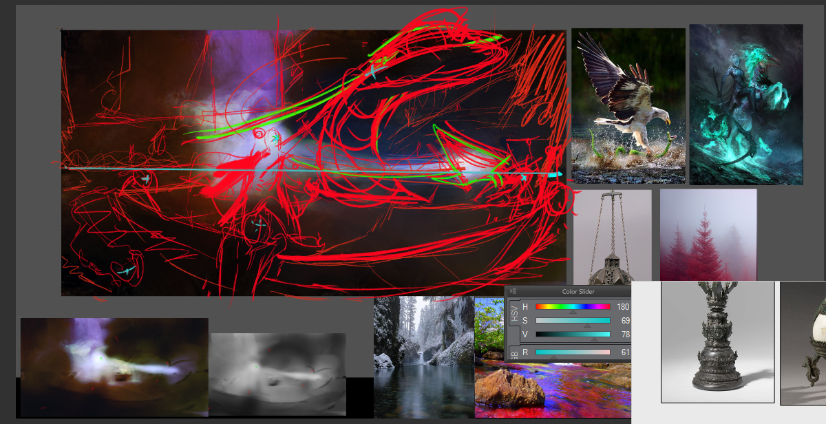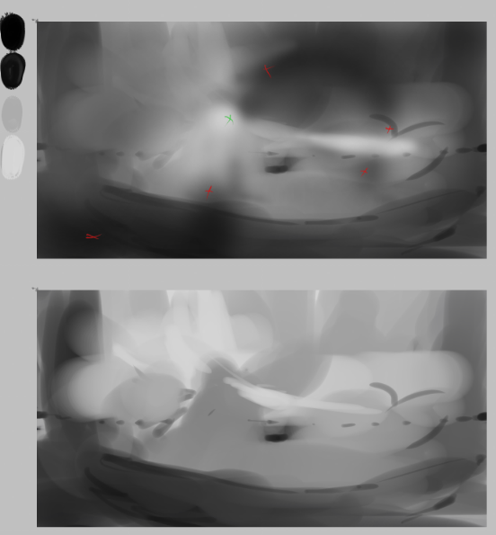 The values are still somewhat skewed at the focal point but that will be adjusted next. Oh, also some reference I'm using to help push me towards the look I want.