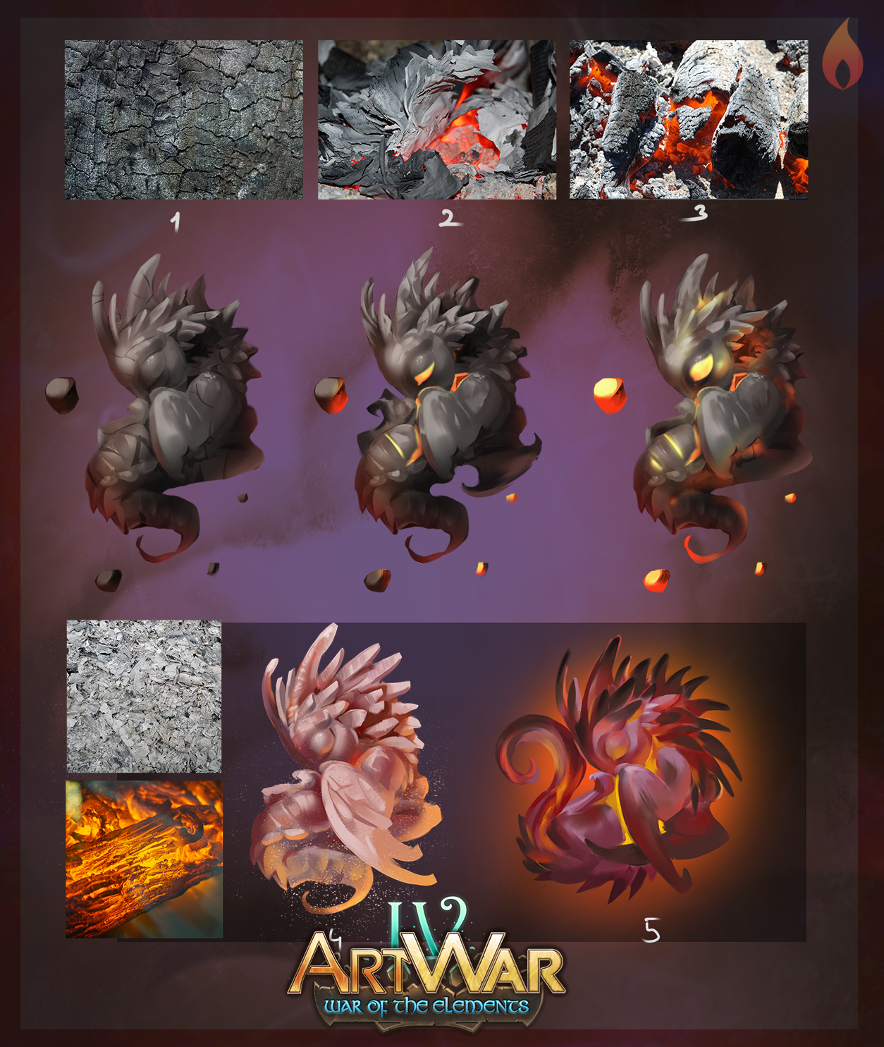 Starting point and first thoughts. Hero mage of the element of fire. The dance of fire can devour everything. Ash is transformed into a new life with his mind, able to live without feeding magic and fire. The hero tames his creation thus feeding and making it stronger.