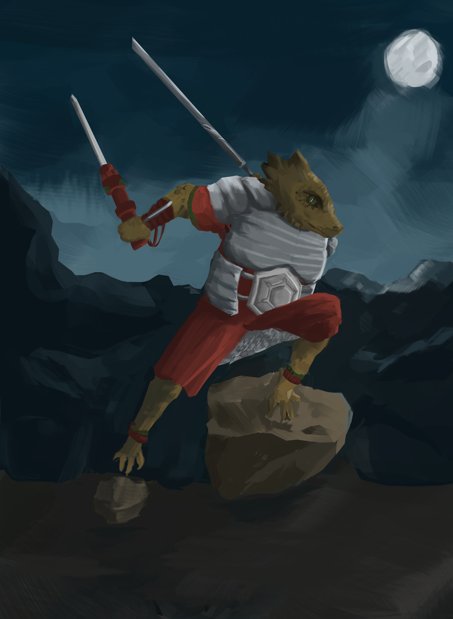 I wanted to do a fast and accurate character. As I was thinking about what vision I had of earth, I thought a lizard character could be interesting as it is a quick animal that lives mostly in the sand, I thought a lizard character could be interesting as it is a quick animal that lives mostly in the sand.To make the character look more powerful and highlight the fact that he is an earth hero I imagined he could use magic to turn pieces of earth into platforms and move on them quickly.First i made different silhouettes in dynamic poses to have ideas of what could be my hero. Then i tried to get different body shapes for the character.