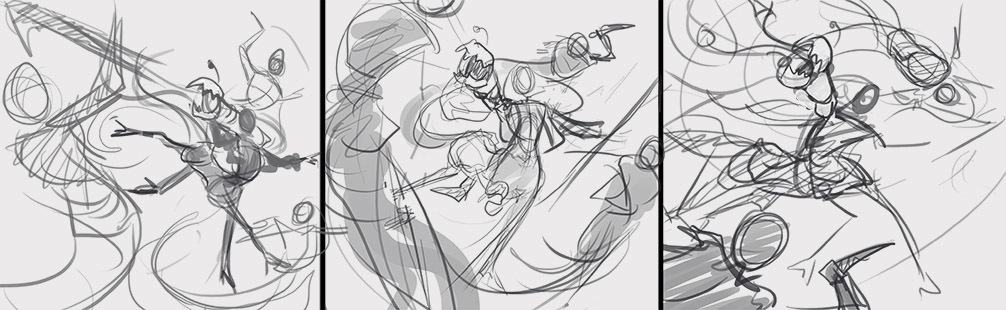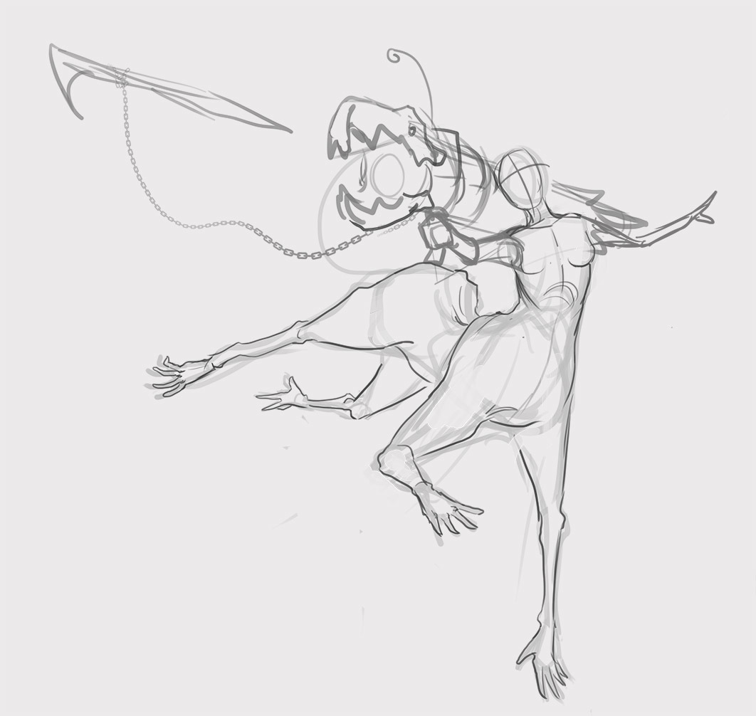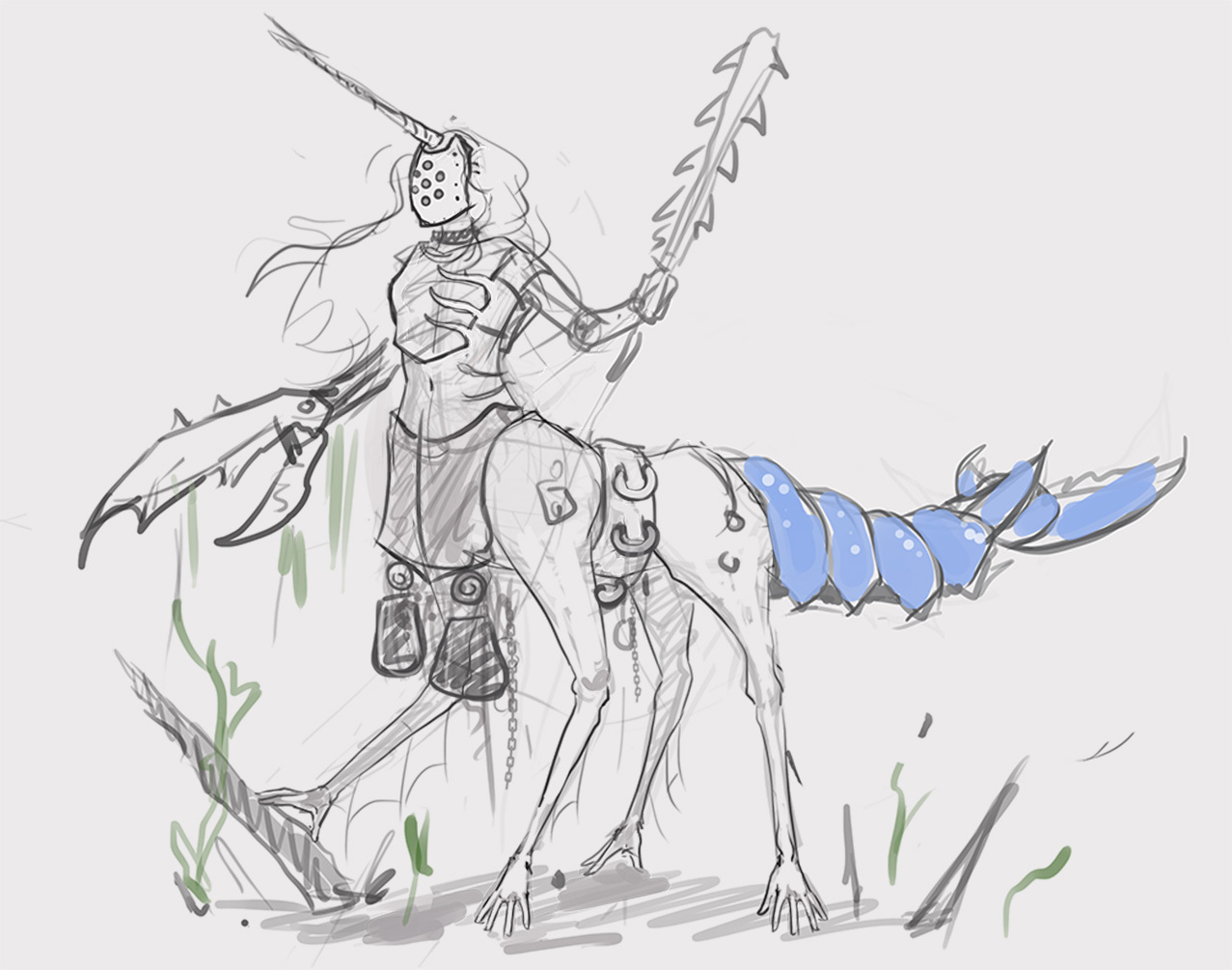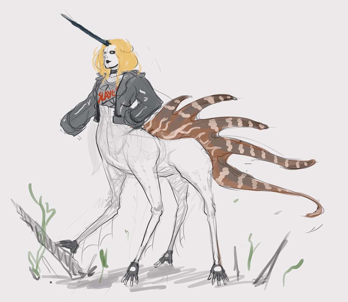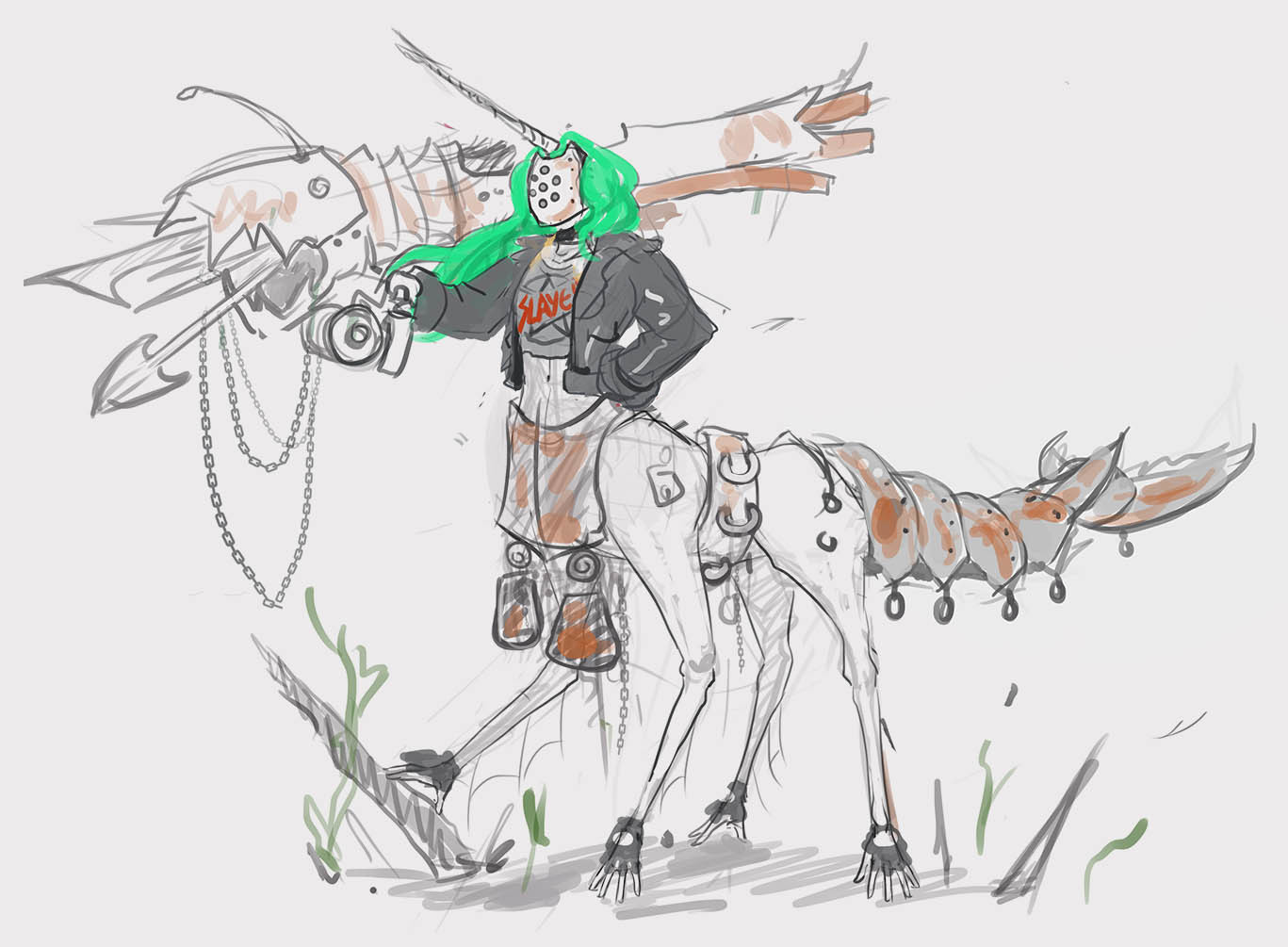 From the very last image, I think the 2nd one from the bottom up (the one with the pink hair and angler-fish cannon) ties closest with the image of a champion for this contest. I think a mixture of medieval armour and punk aesthetics can make for a crazy aesthetic.
