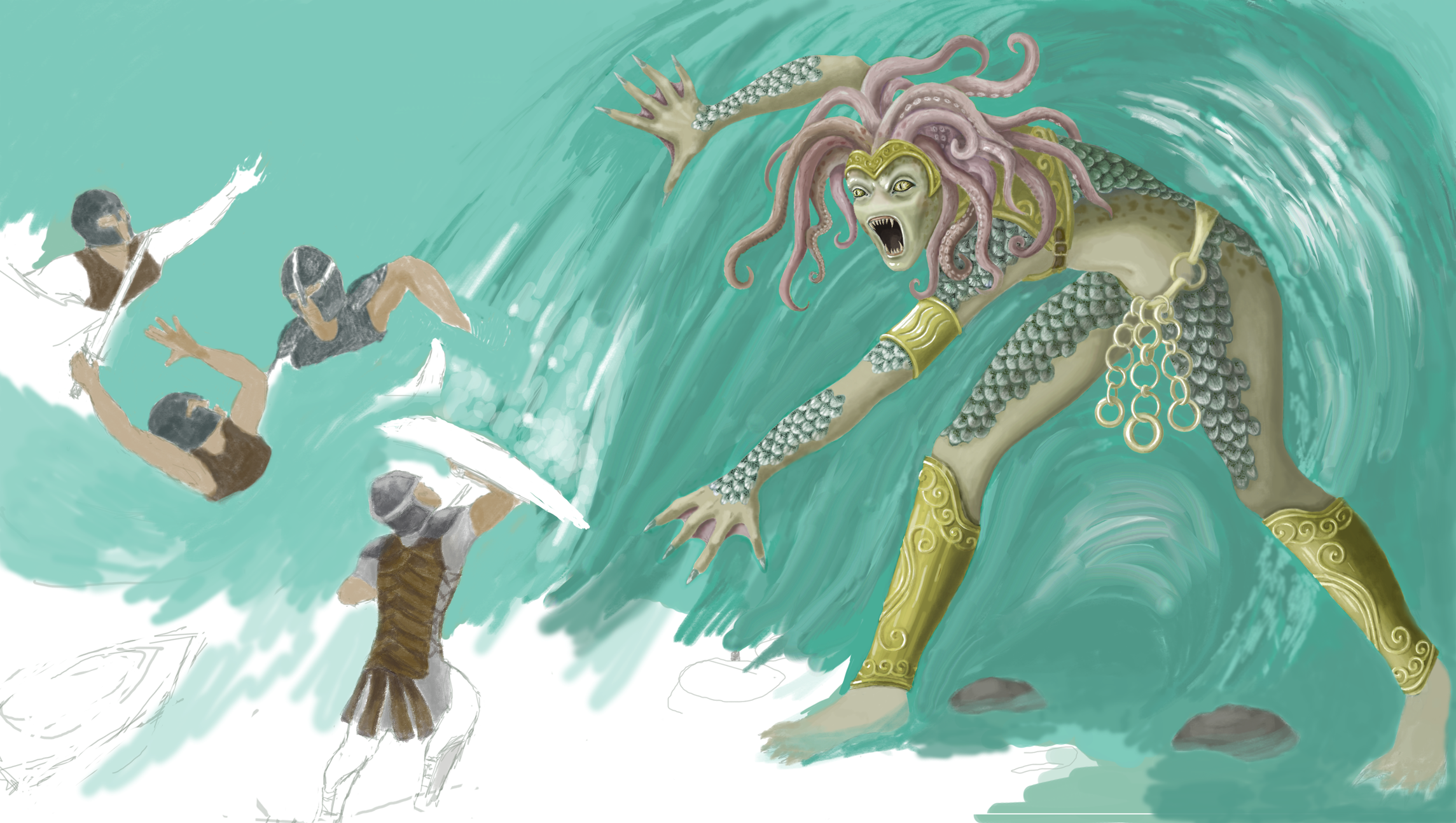 A type of evil sea goddess that terrorizes towns and villages by casting powerful waves and smashing everyone that tries to stop her.