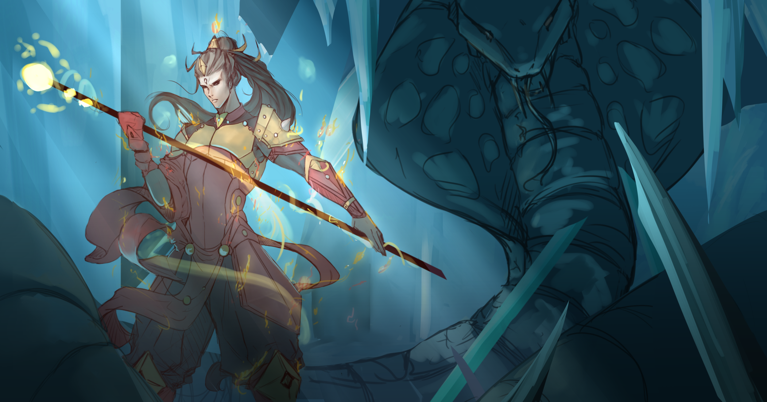 My Hero is gonna be in defend mode, so I'm tempted to turn this into an ambush drawing (since it's war). Not sure if it should be "mermaids" or more "sea snakes"