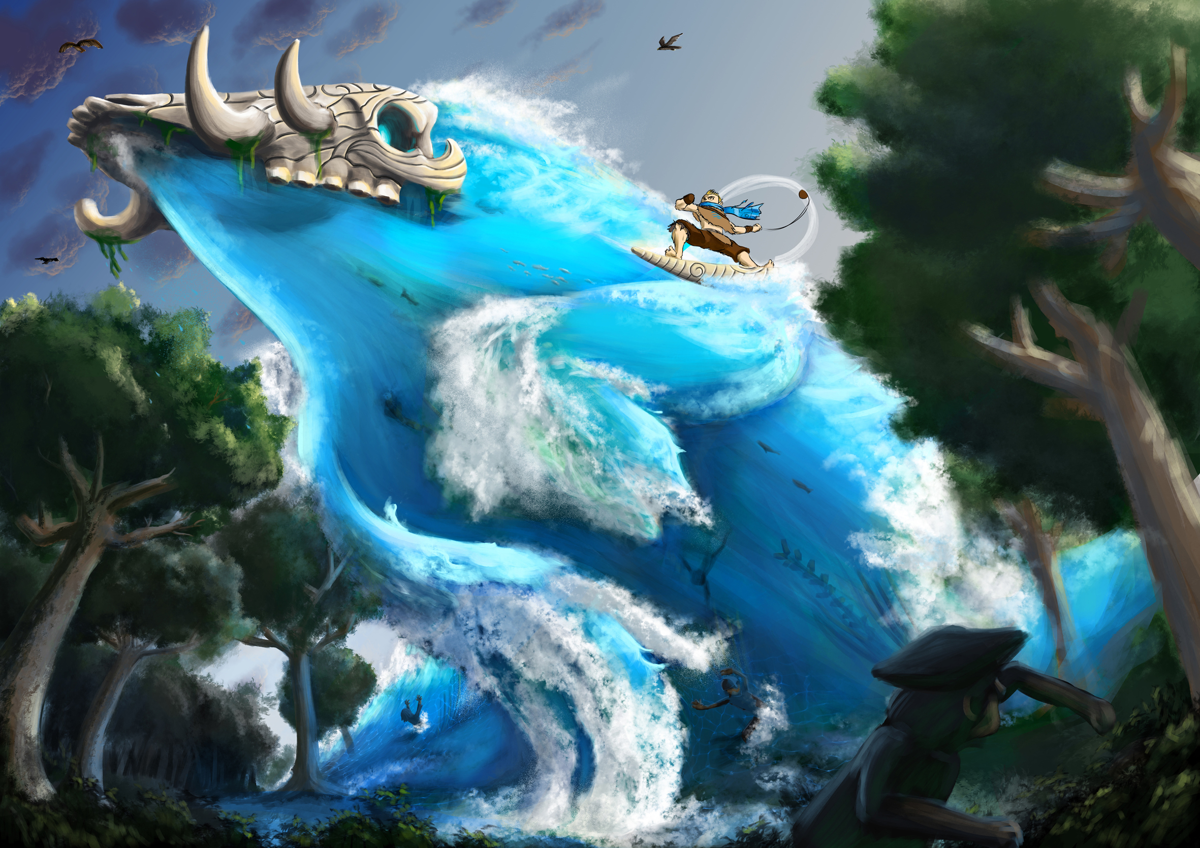 And an initial sketch for the boar. I want to go quite watery with this, while the wavy foam will form some kind of hairy structure the rest of the body will consists purely of water.