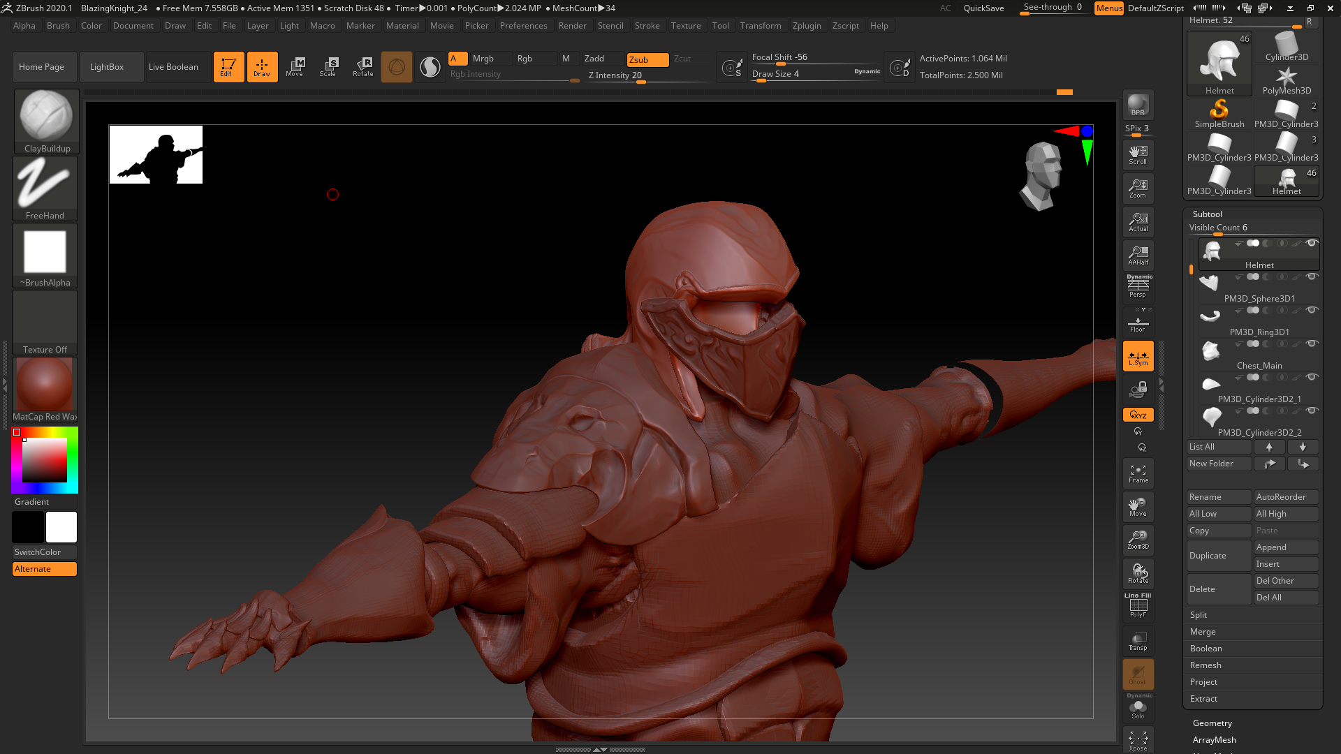 I think I am done blocking in the armor, so now it is time for me to start increasing the resolution and adding more details. Like I have mentioned, I am not totally up to date with ZBrush, so any tips about transitioning from dyna meshes to subdivided meshes would be great to know.