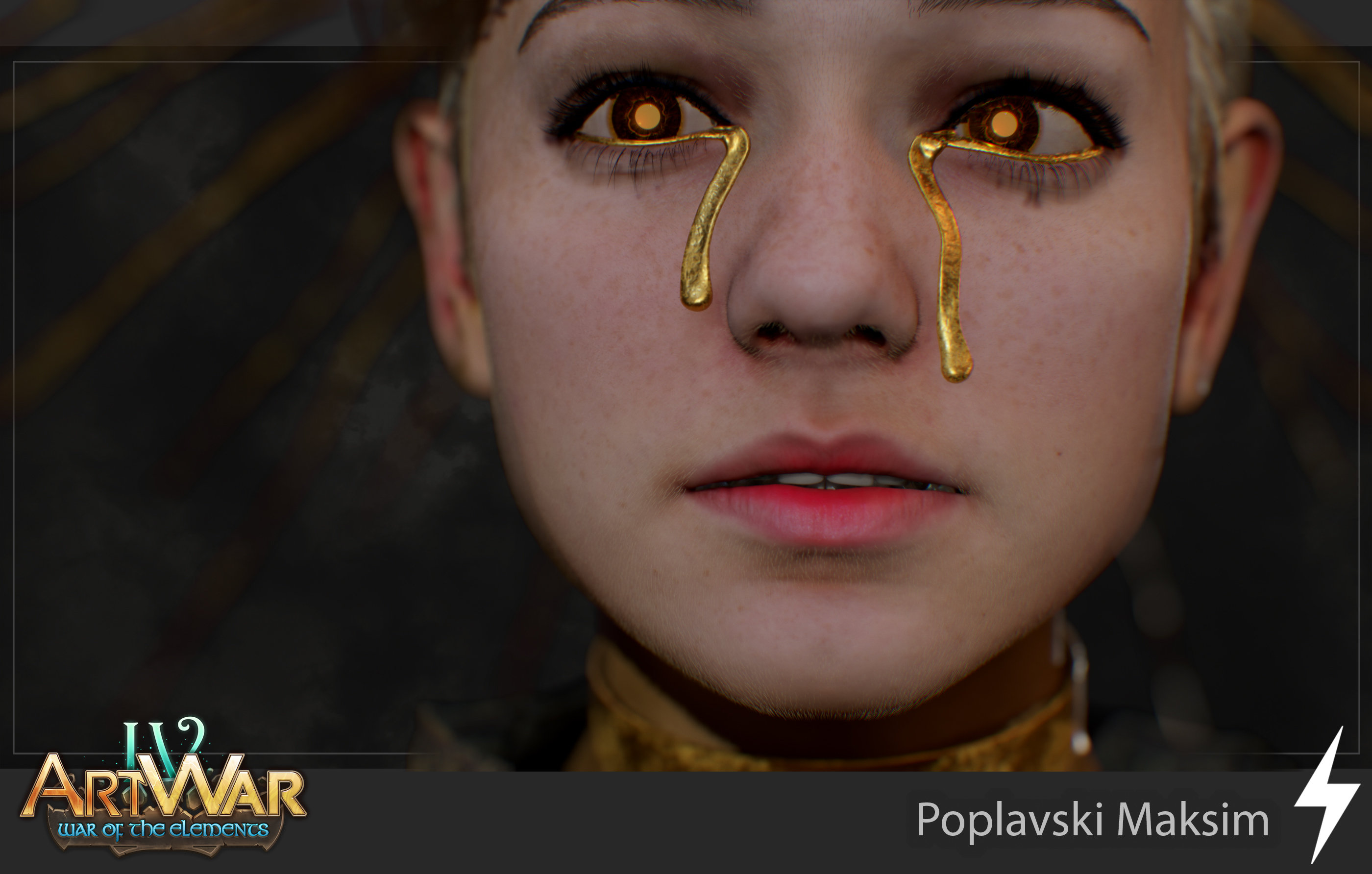 да изначально венок планировался не такой, я на самом деле переработал весь концепт раза 3, стараясь не уходить от идеи, первый вариант был с большим количеством каменей, смотрелся вычурно! переделал в терновый, пусто показалось, переделал в этот. и так почти со всеми деталями, делал смотрел сравнивал и либо дорабатывал либо менял внешний дизайн и делал по новой....... да золото отличный проводник, ну и как то вспомнился сатана из фильма Константин, он спускался и у него с ног капала смола, показывая что в аду жара и кипит смола, как стихия, вот я подумал а что можно сделать в противовес, вспоминая иконы фрески рисунки ангелов и тд получилось что золото... да, не как металл, а как некая субстанция которая пронизывает ту реальность, как кровь - только золото.....