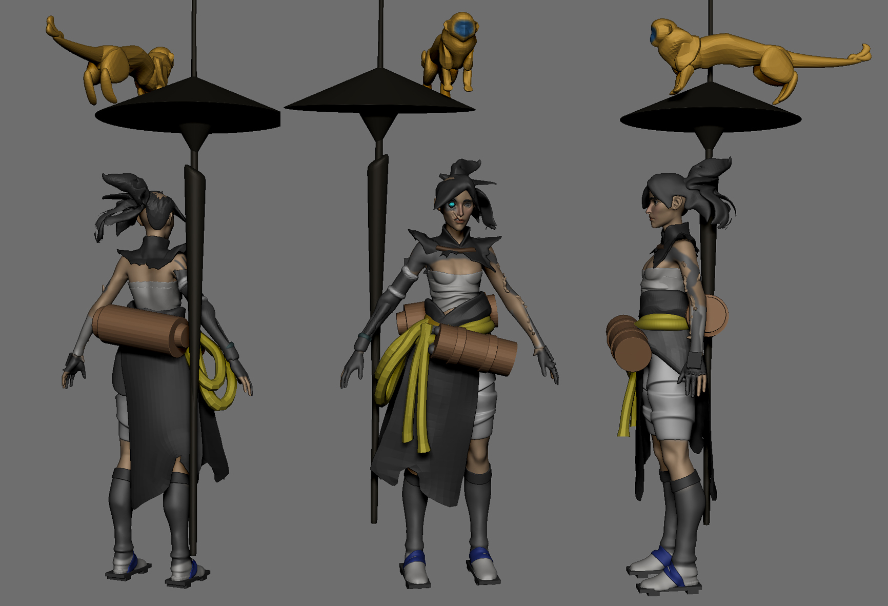 and more blocking, decided to give her a friend that flies into the air creating thunderstorms, apparently the raiju is an mythical electric beast, which is usually represented by a wolf, but ive been watching monkey documentaries recently so my raiju will be a monkey dragon...