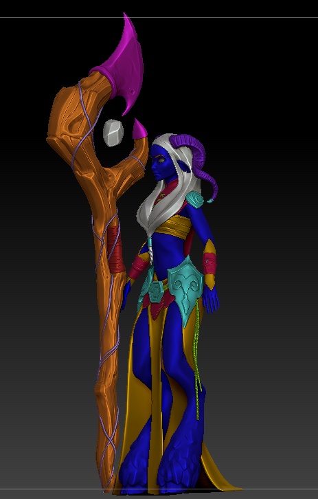 After my retopo (approximately 20K tris), i choose to prepare my sculpt with color vertex to made my ID Map, that I use to color and texture on my bake ( made on Substance Painter) :
