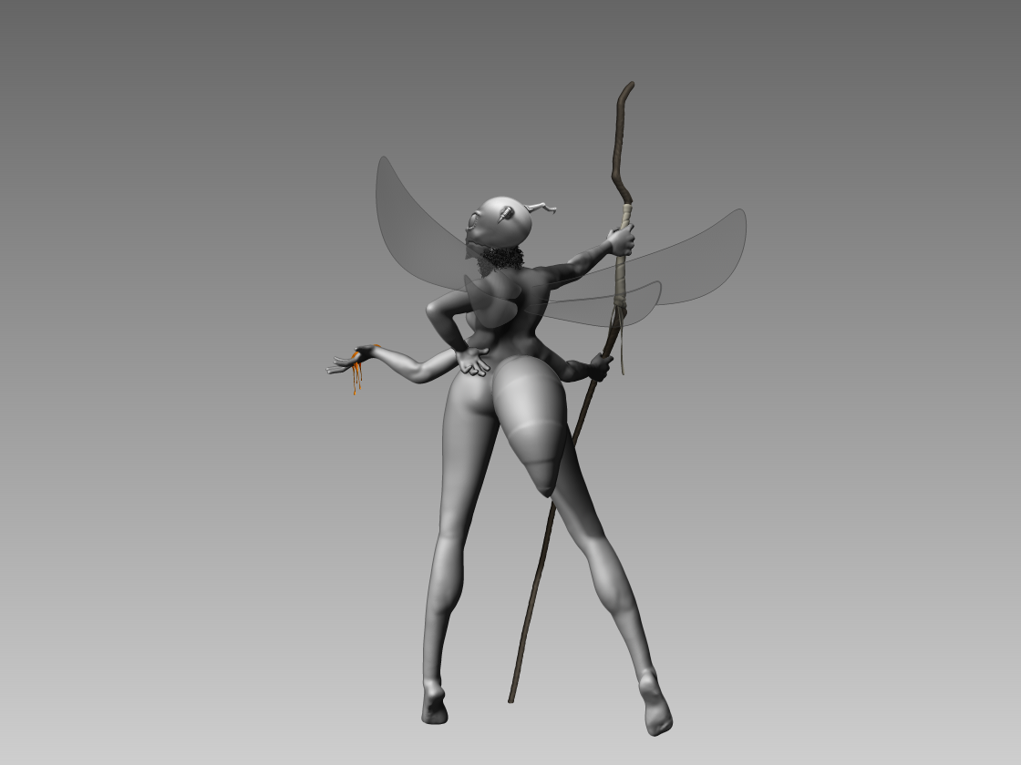 Just prototyping.... will have wings, elastic skin betwenn fingers, and as weapon a large stick with bees sting on the top.