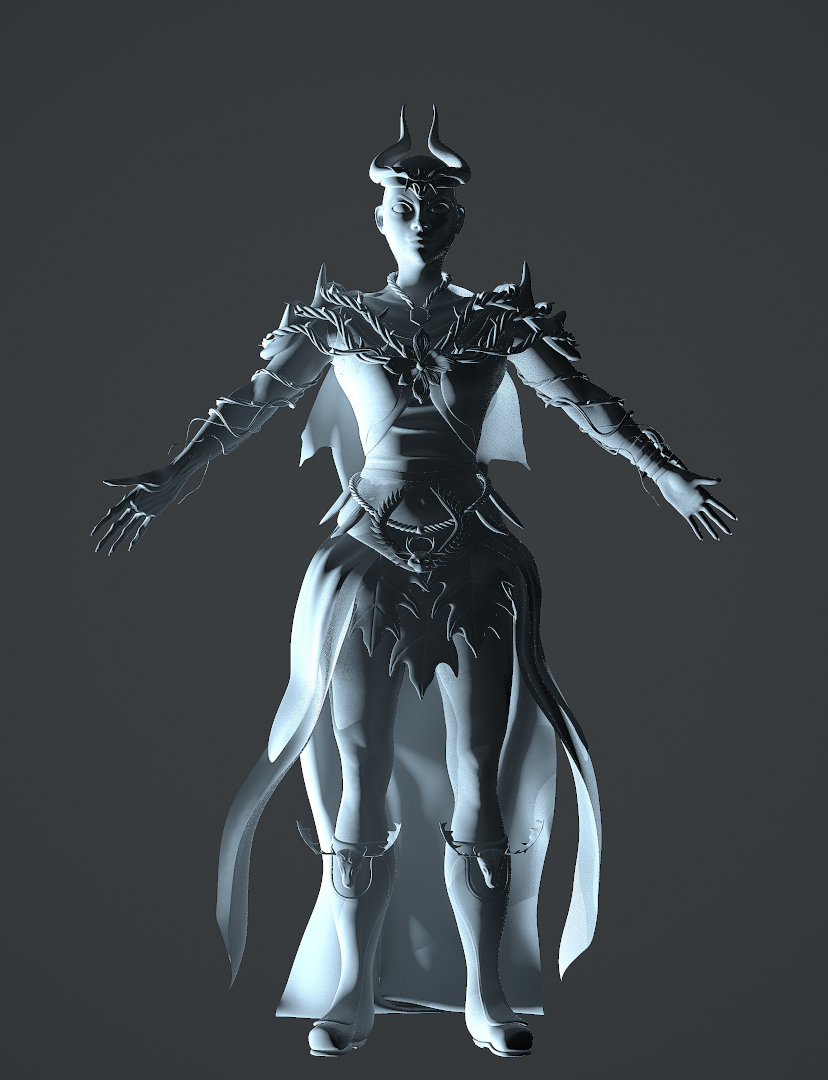 This is an update. I worked my way through the outfit and all the features I had in mind. I will add a lot of details in to the textures. That way I have more control over them and have more possibilities. Meanwhile I'm also working on the staff that she will carry.
