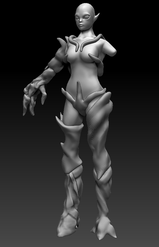 Not alot of progress, but ive blocked out some vines around the character. these need to be detailed, and then i shall also add thorns along them. im thinking the fastest way of doing this might be to use the vine as a mesh emitter in maya, and get it to emmit a couple variations of thorn i create. i can then go thru and make sure they are oriented correctly. I had planned on retopo'ing and uv's/ proper textures. but im running outa time... so it might just be a quick zbrush pose and paint, if i finish at all XD