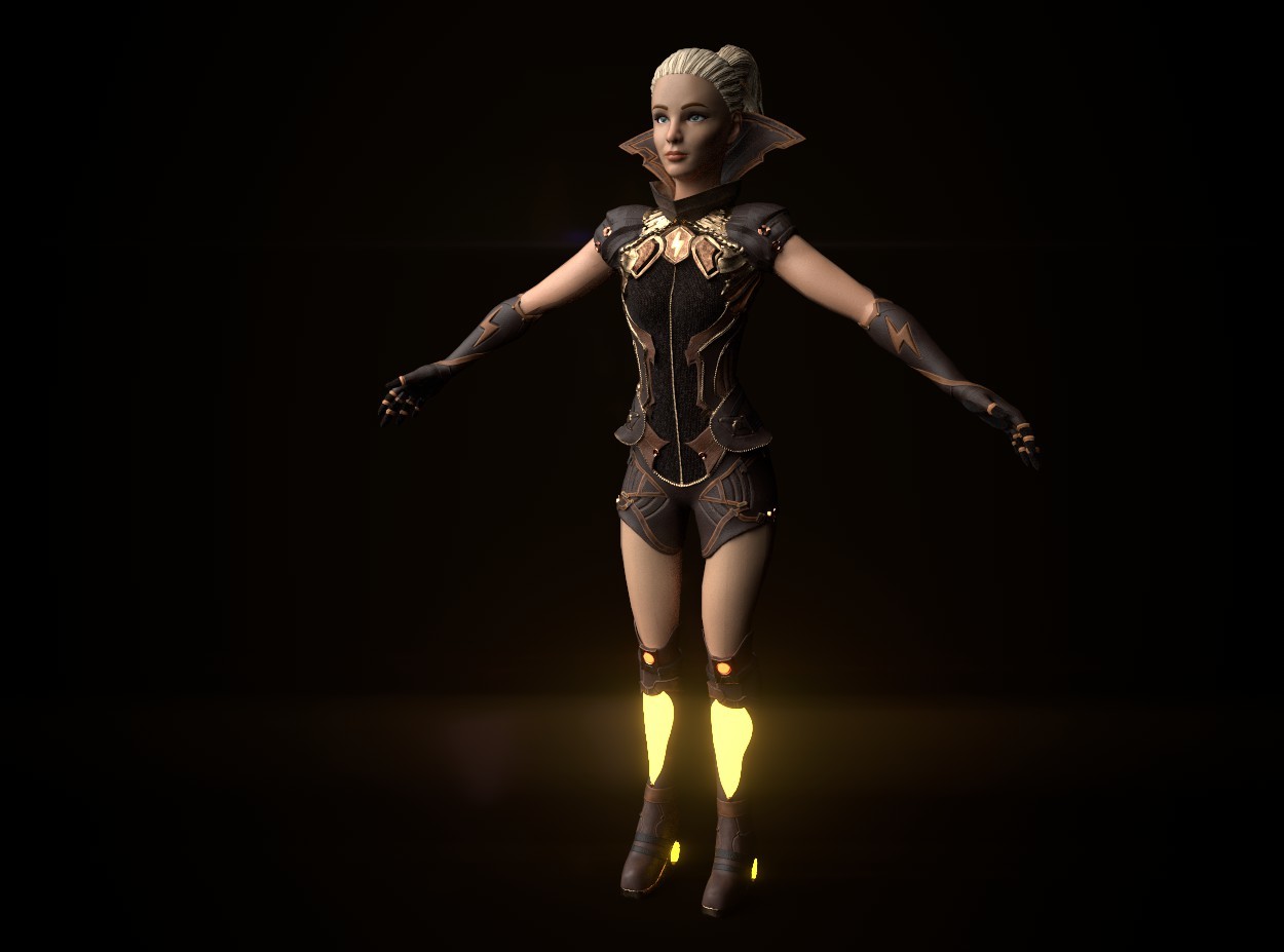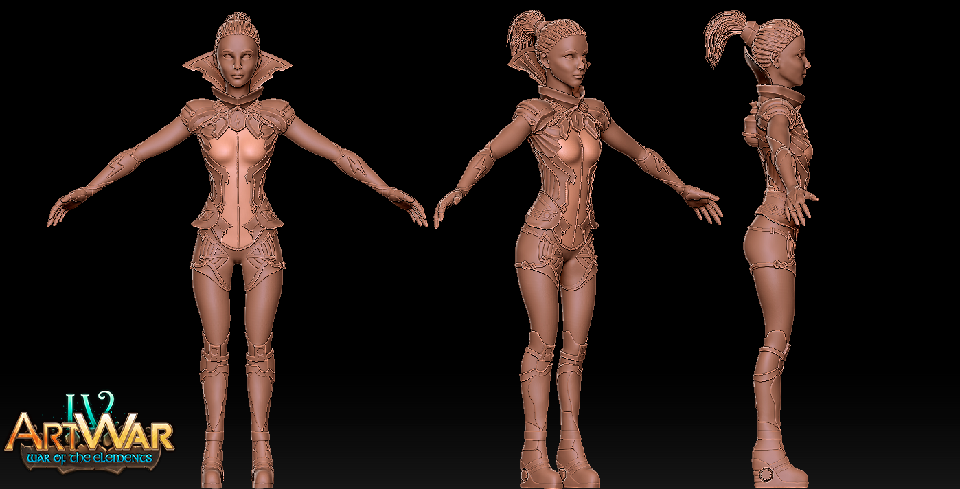 Body needs work but here it is i found a similar female body i think you are going for just make those changes and you should be golden to making this look amazin, it still early you can do it.