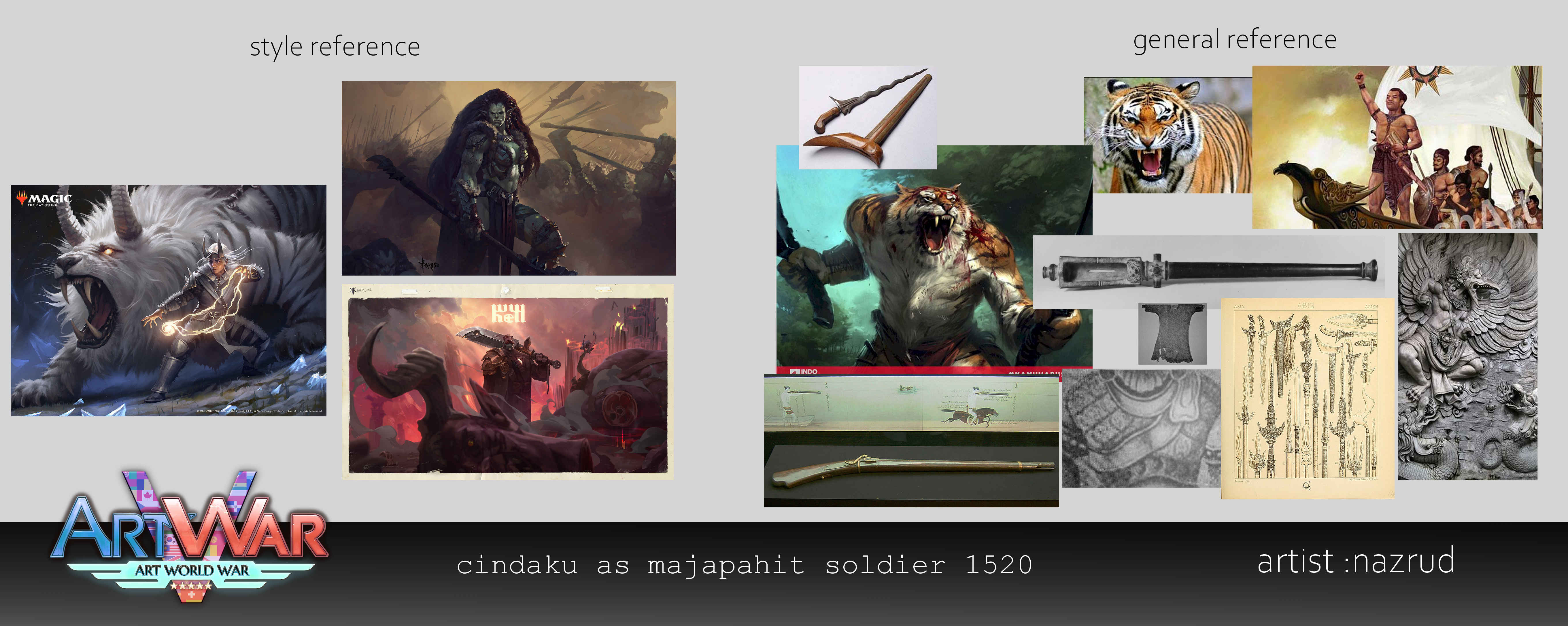 I believe the top right thumbnail is the best if you want to show of more of your character. The bottom right is really nice and dynamic, better if you want more facial expresion. I like your concept, fire is always awesome, and fireball shooting tigers are just amazing =) Good luck!