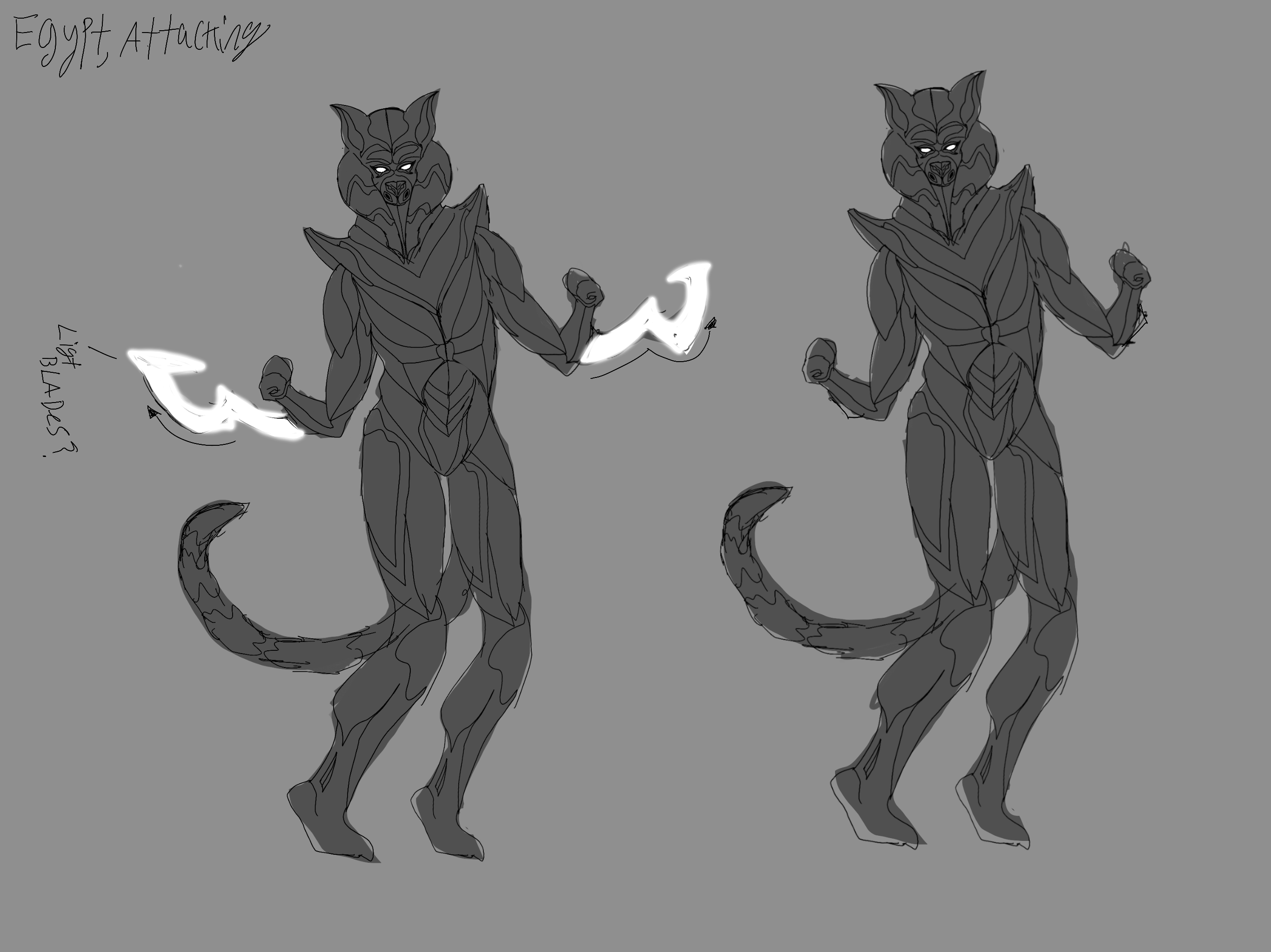 For my entry I am creating a robotic version fo the ancient goddess Sekhmet to represent Egypt. I've always been fan of Sekhmet and I thought making a robot/cyborg like champion would be a good take on Egypt. Design sketches