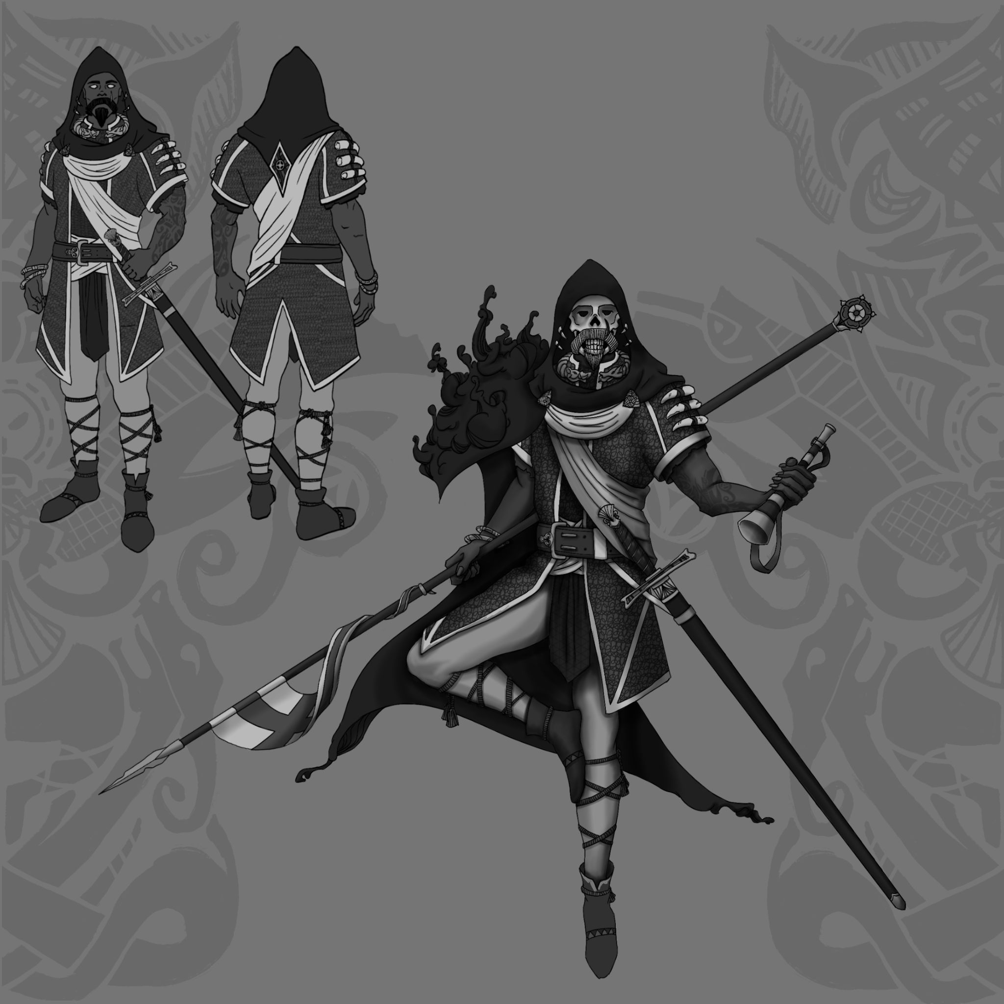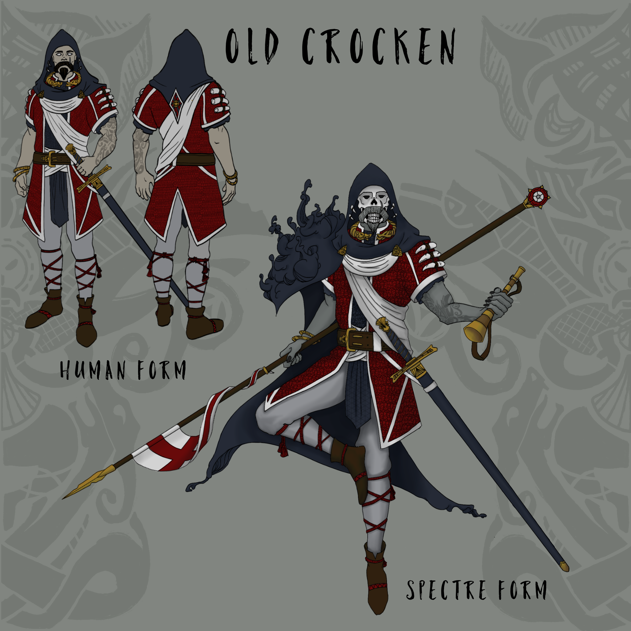 Update, wanted to bring some more spectral design into the character and though it would be cool for him to have a human form and a ghost form. We have a lot of ghost stories in England and I thought that would work well with the design. Settled a bit more on the colours but still be great to hear peoples thoughts!