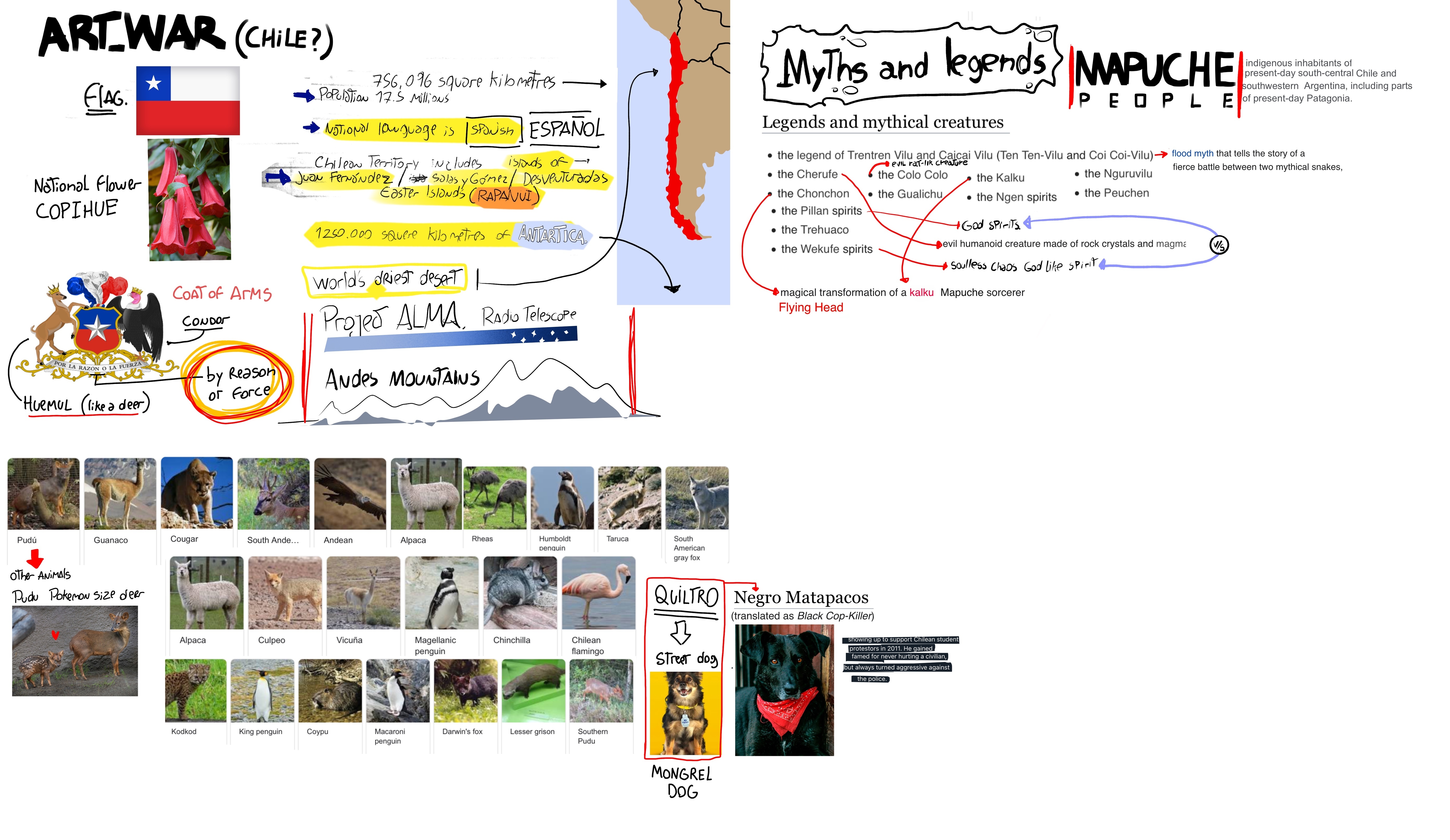 Chile I choose you! So here are the elements which I want to use for my future character champion design, 1 the myths of the first nation, 2 project ALMA, 3 symbols of Chile