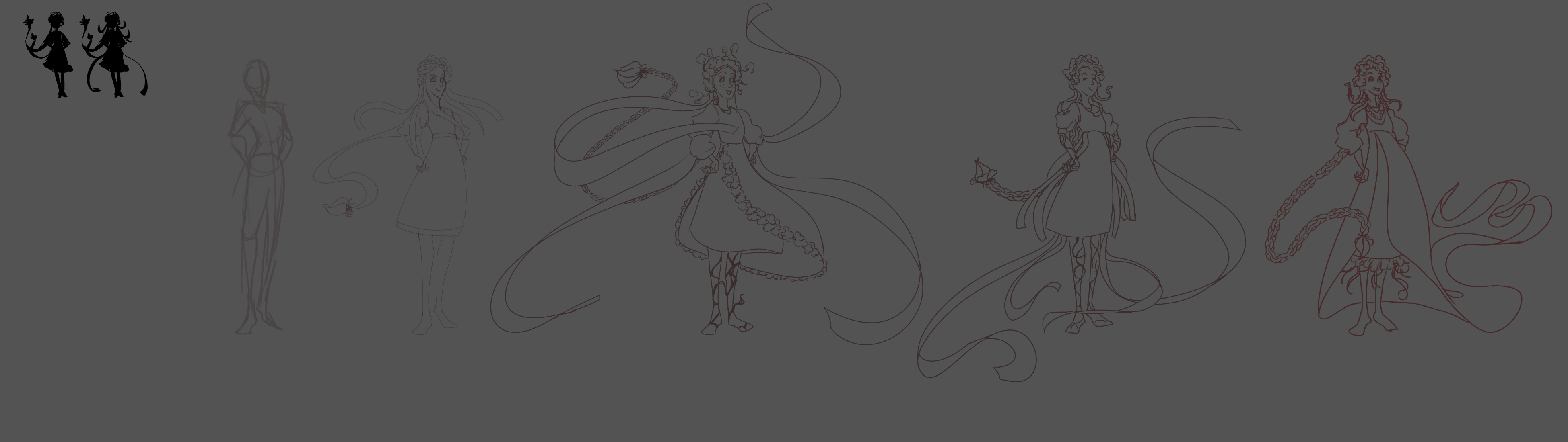 Continued with Sketching out a few Outfit Designs and checking the silhouettes. I really liked this stage of the process!