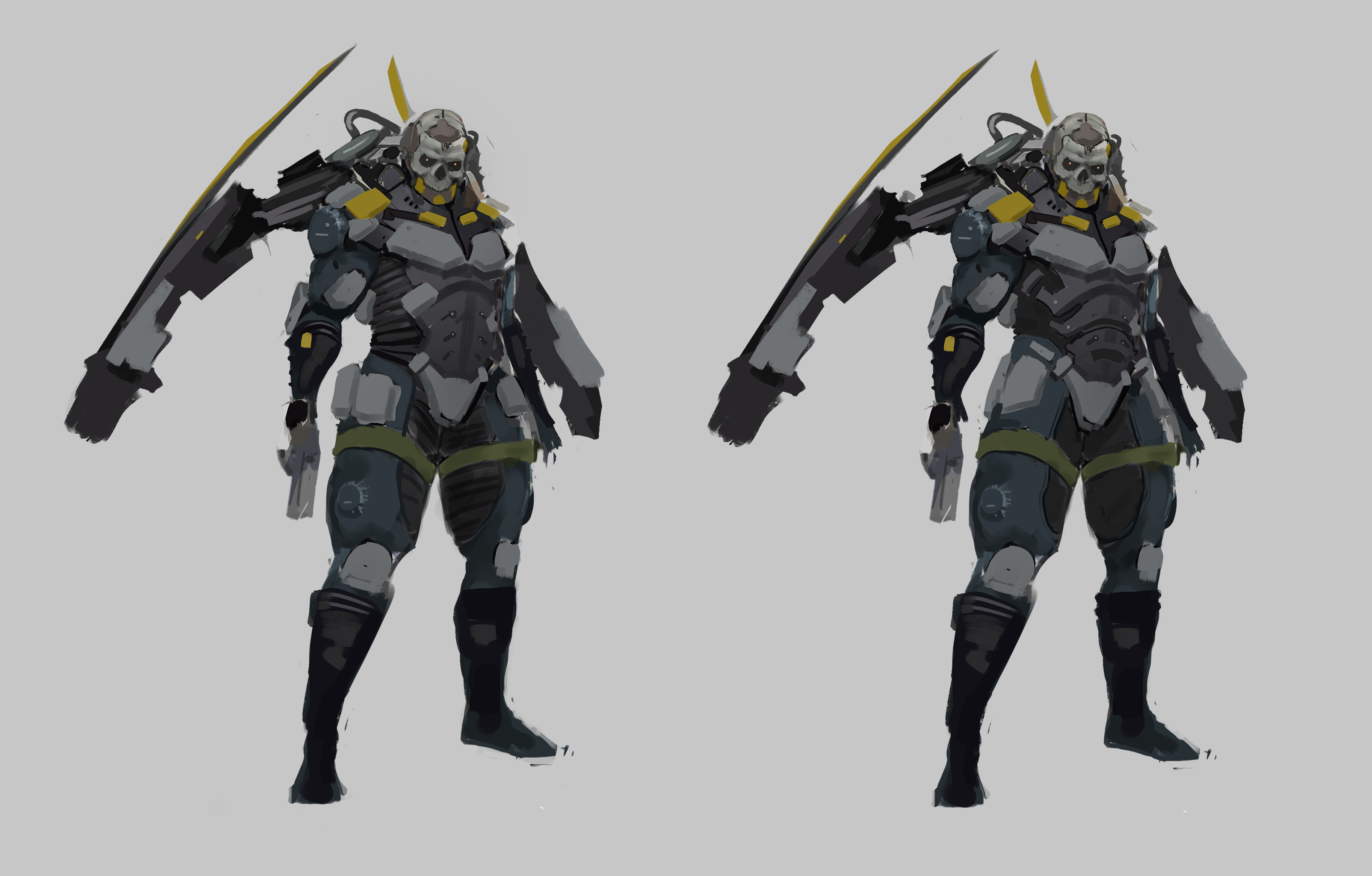 Of your layouts, I think any of the top 4 could work. The bottom two are not saying anything new that your character sheet image is already saying. 1, 2 and 4 seem the most dynamic, with the first one probably being my favorite. Good luck whichever one you choose!