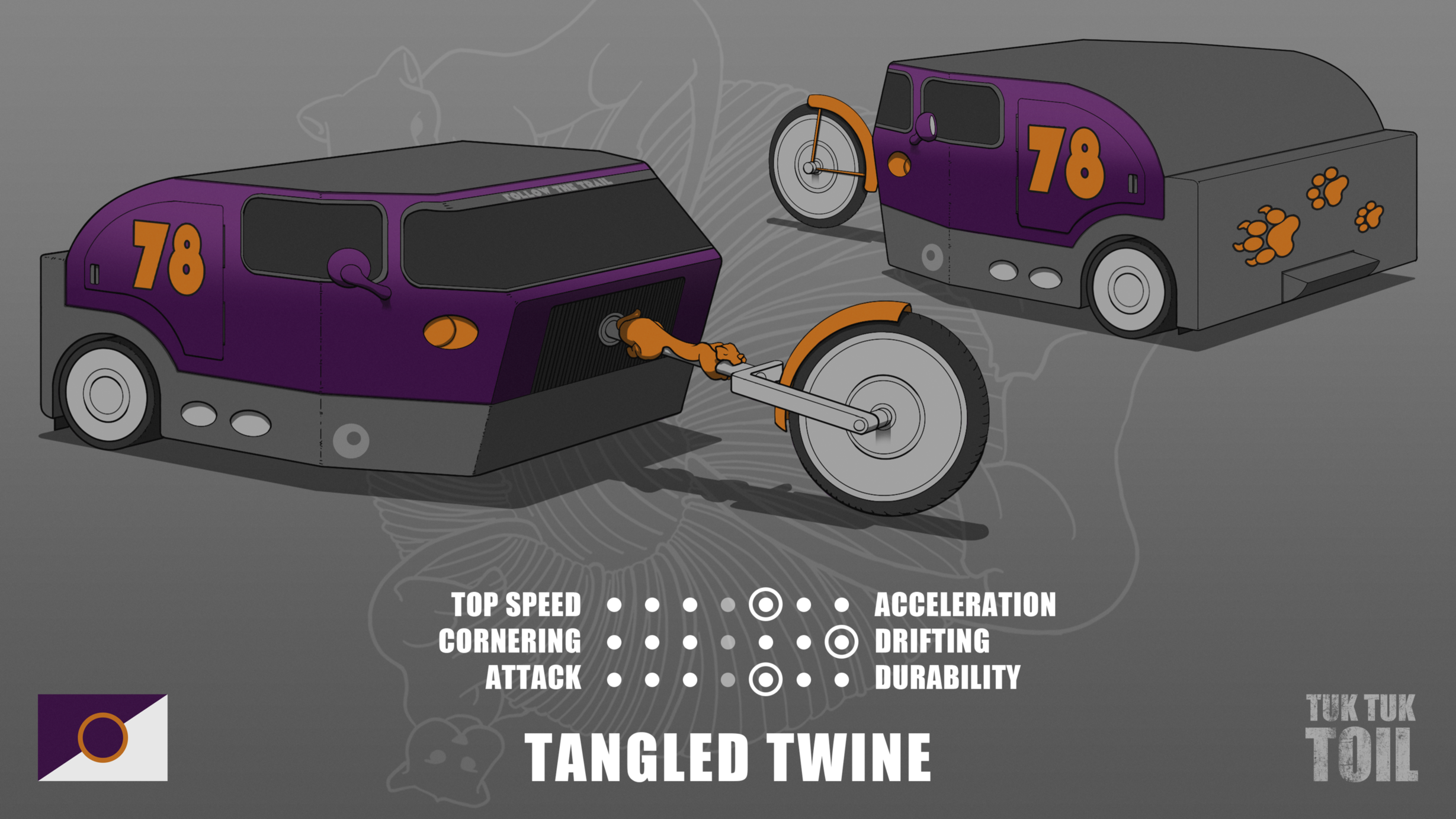 Dragster, acceleration-focused model. (Originally a more default and generic design but felt too similar to the off-road model. The design moved towards a tractor to be part of the farmers flock faction.)