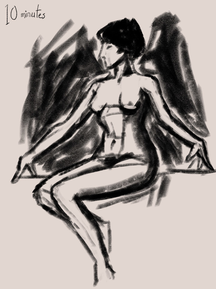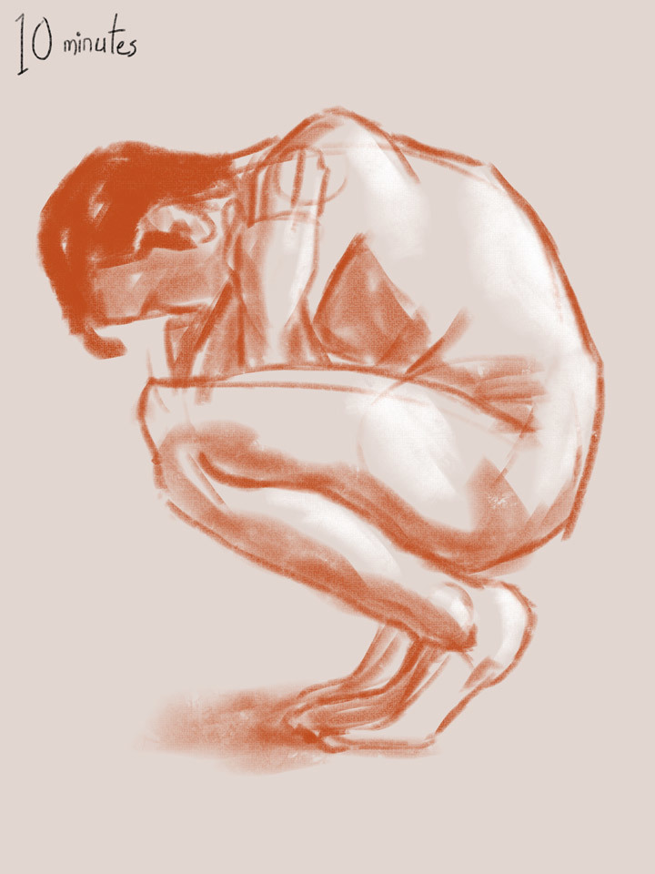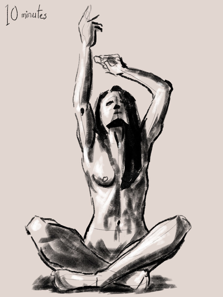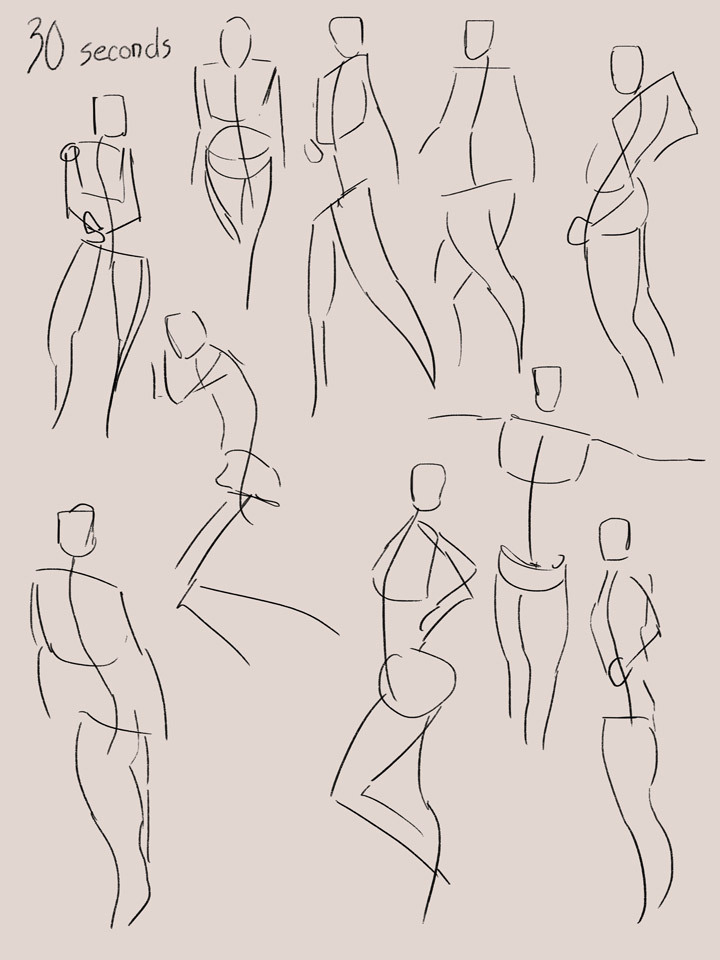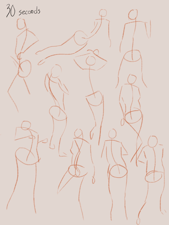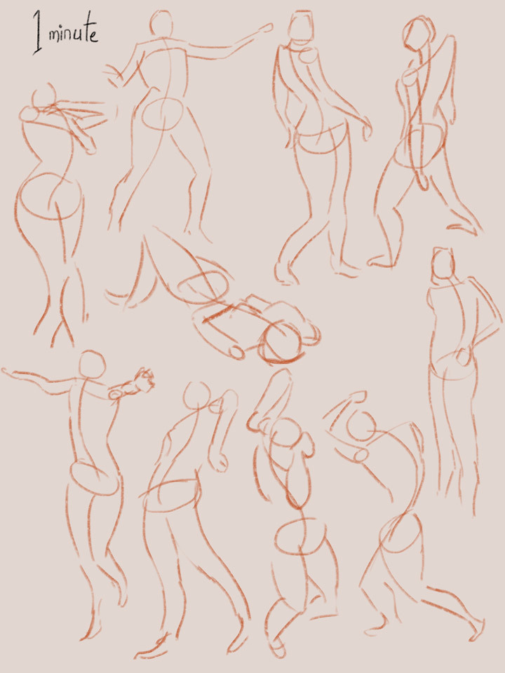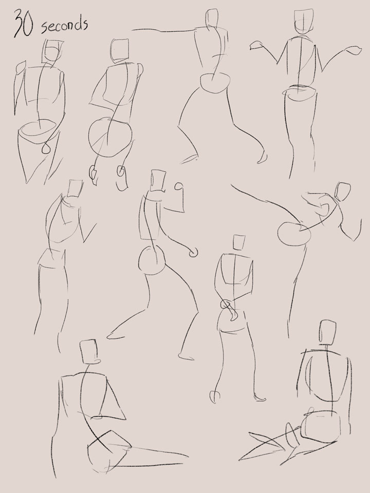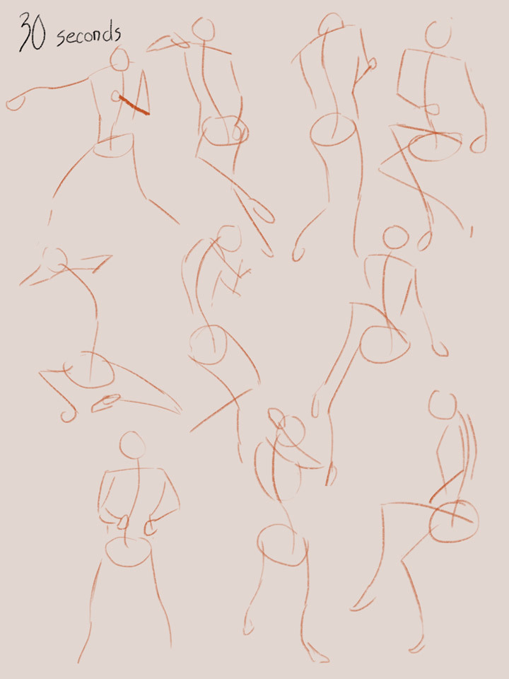 In the hopes of improving my figure drawings skills I started to do daily sessions divided into 4 parts. 10 minutes of 30 seconds drawings, 10 minutes of 1 minute drawing, 10 minutes of 5 minutes drawing and a full 10 minute drawing. Here's the result of the first session. It's really hard XD