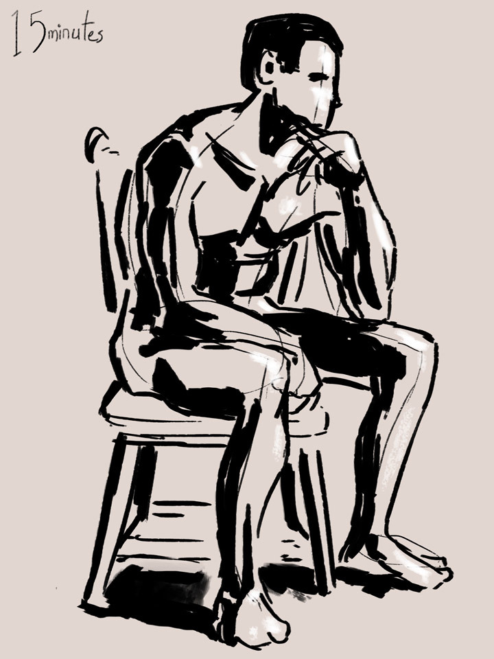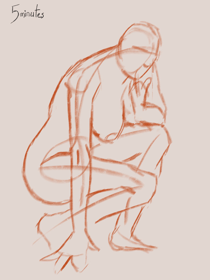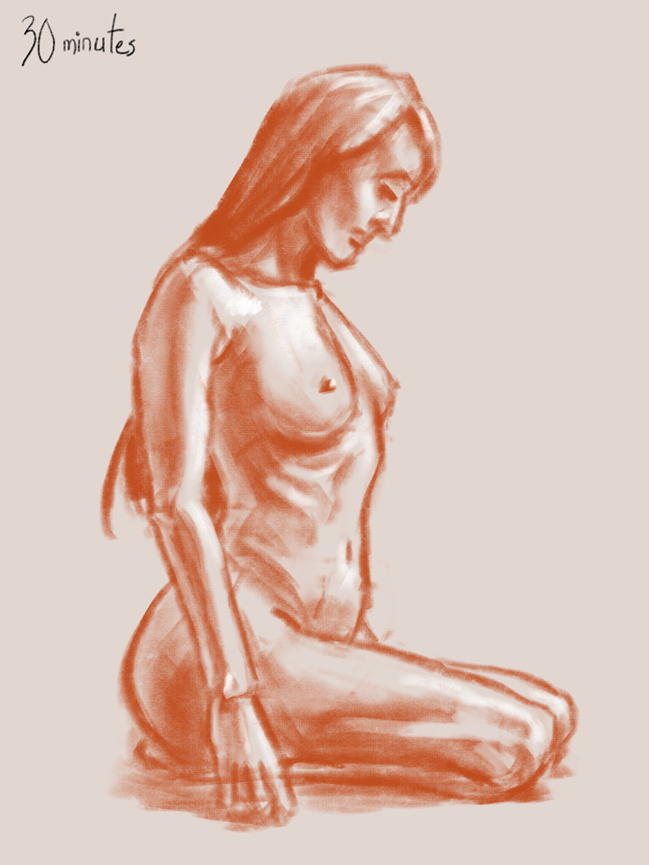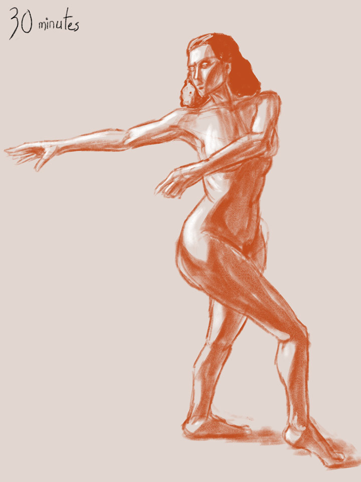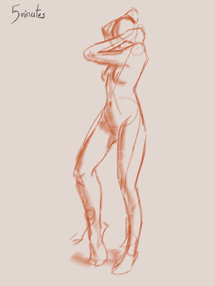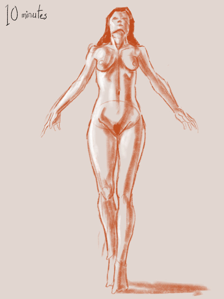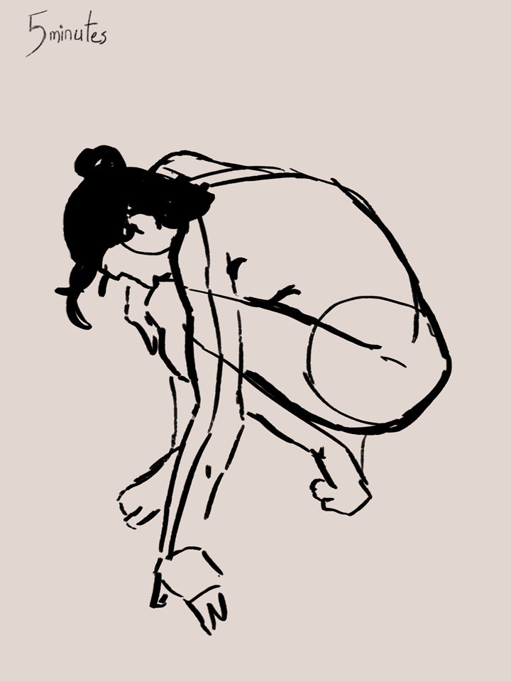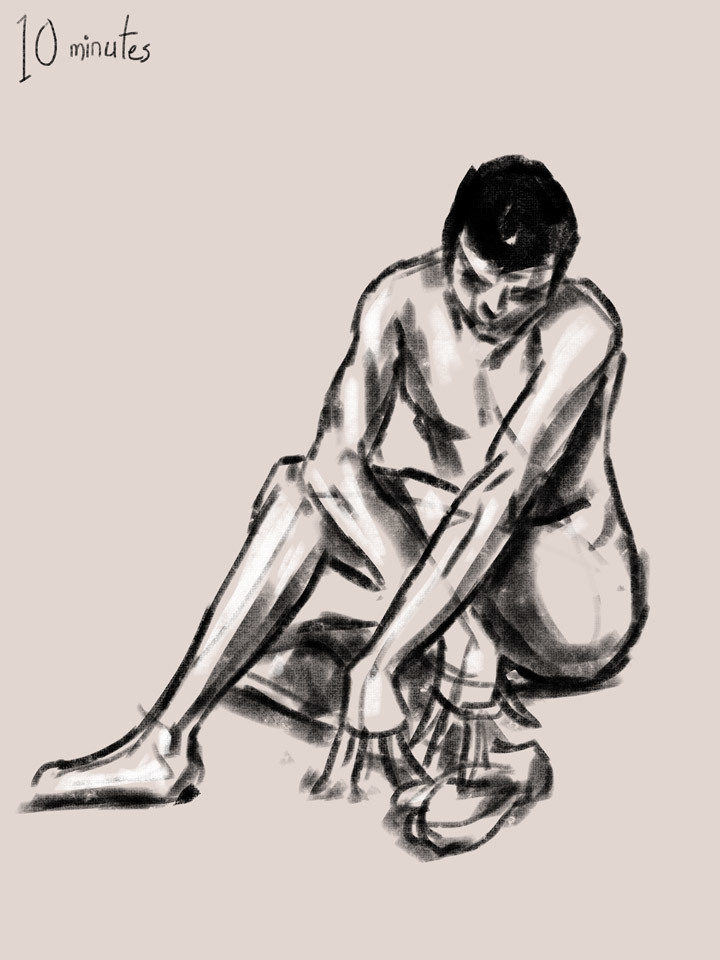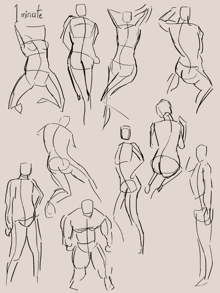 In the hopes of improving my figure drawings skills I started to do daily sessions divided into 4 parts. 10 minutes of 30 seconds drawings, 10 minutes of 1 minute drawing, 10 minutes of 5 minutes drawing and a full 10 minute drawing. Here's the result of the first session. It's really hard XD