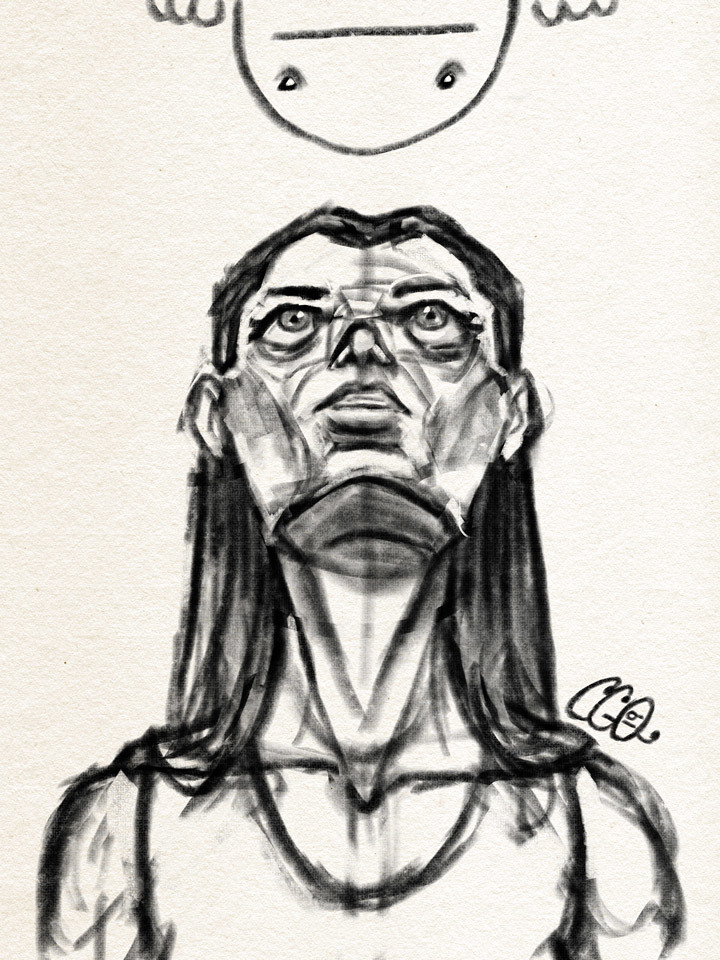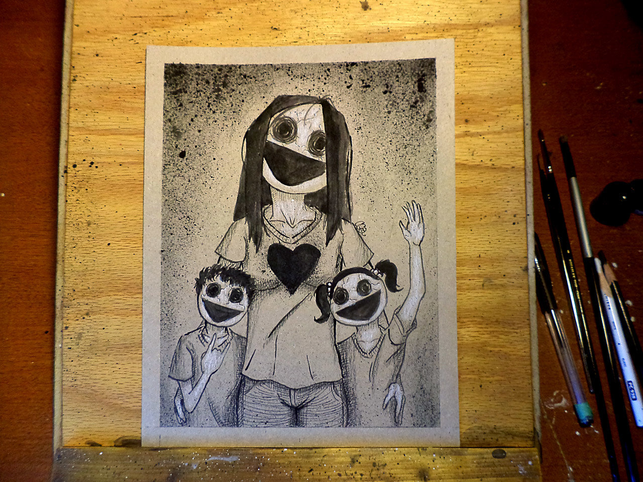 Since summer is coming I want to do like I did last year and go draw things from life outside, but I'd like to find something more convenient to carry than brushes, ink and water. So I did this little test I did combining colored pencil and oil pastels on a small black canvas to see how that works out.