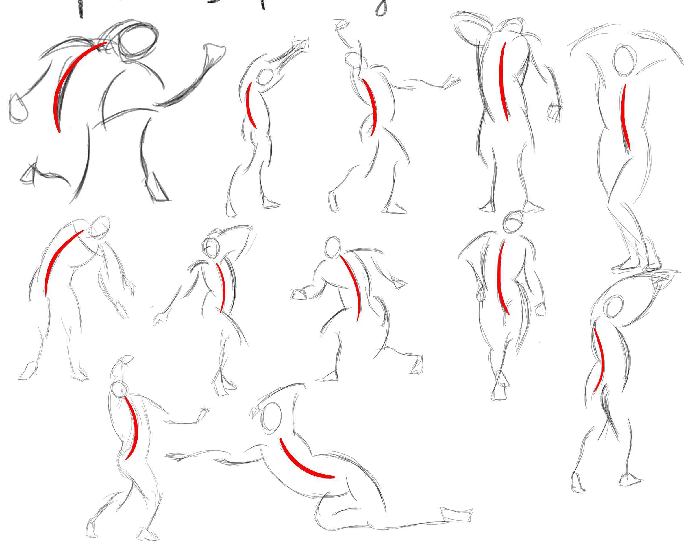 First figure drawing ! (2min) I highlighted the line of action afterward