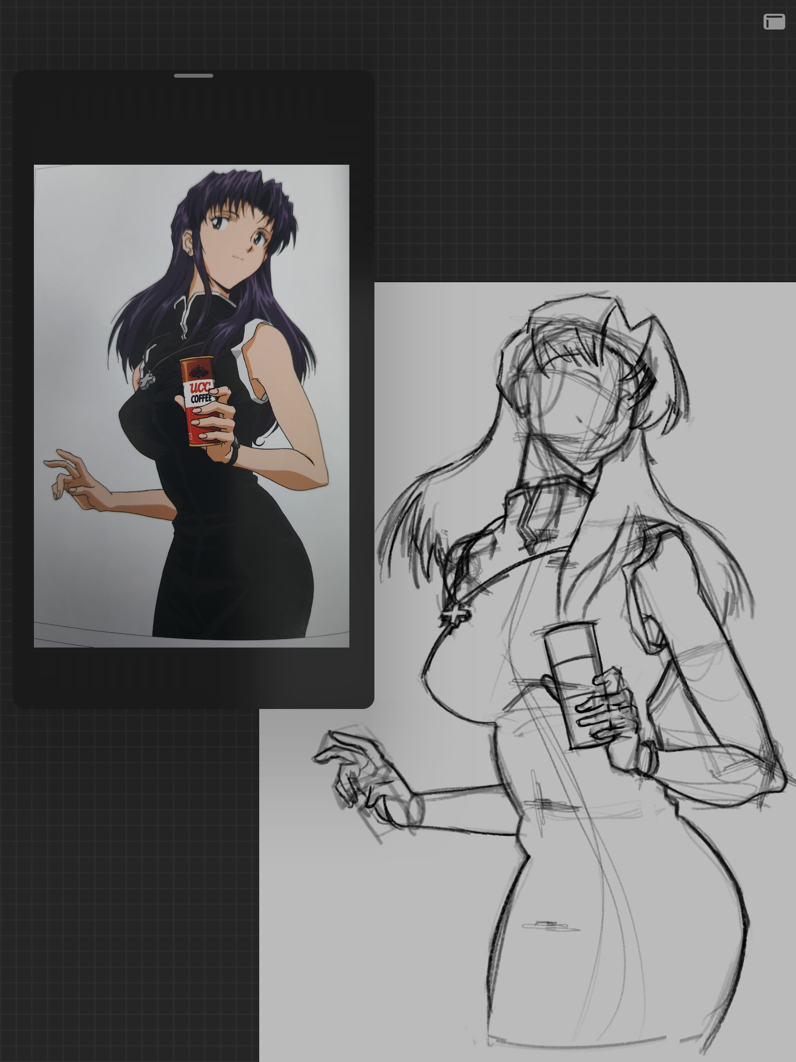 I'm behind on my 5 copied linearts, heres #2, finally busting out the anime/game art books I got for christmas 2023 XD I've been obsessed with the Neon Genesis Evangelion illustrations 2007 - 2017 book this week.
