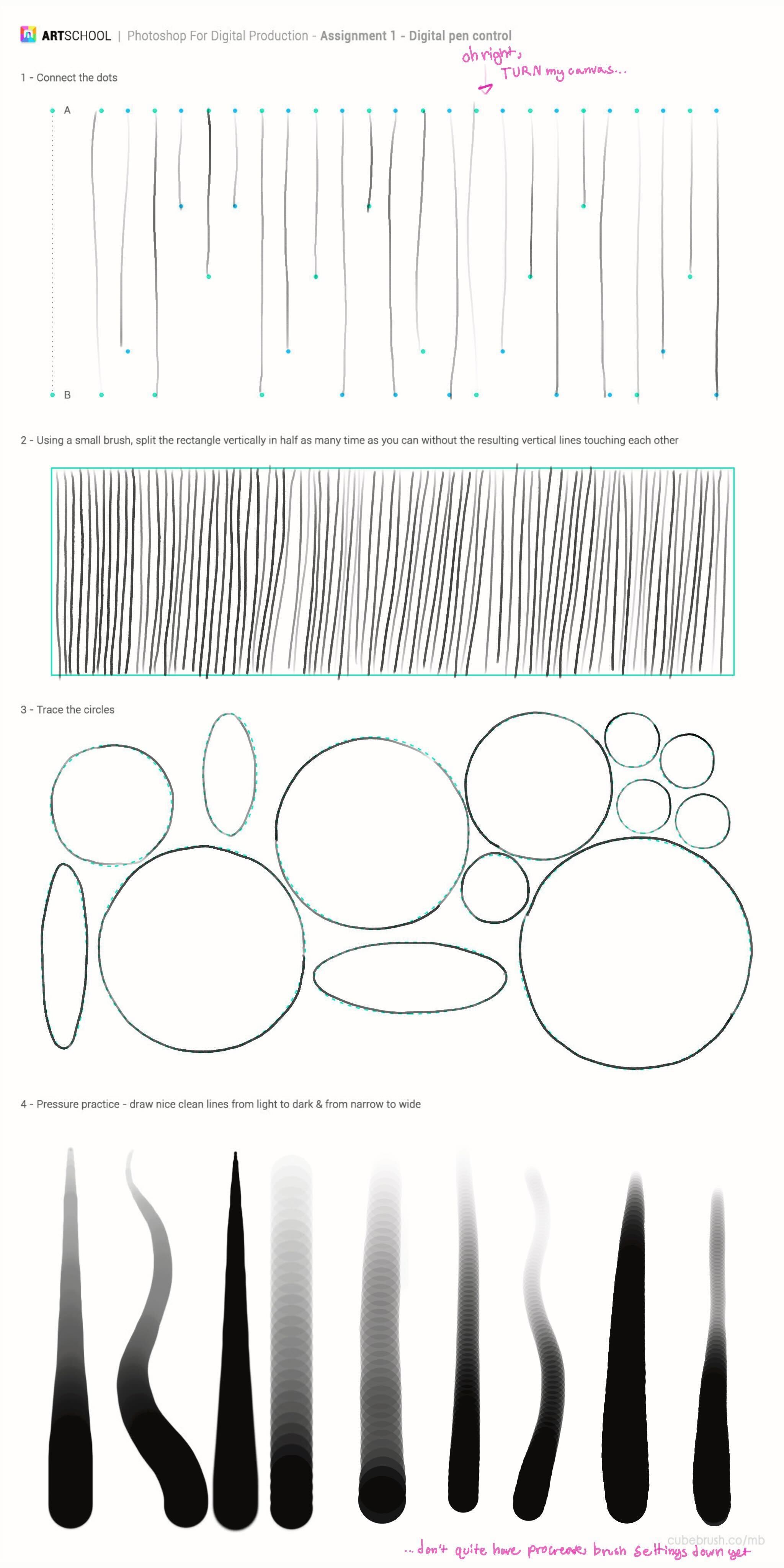 Well, it's definitely not January, but I finally got the motivation to dive into this.Going to share my progress as close to weekly as I can. Sharing this particular assignment before I finish the others as I can't seem to figure out how to replicate the brush settings for the first three lines in Procreate. If anyone has some advice about how to get setup brushes to get those lines, I'd be grateful!