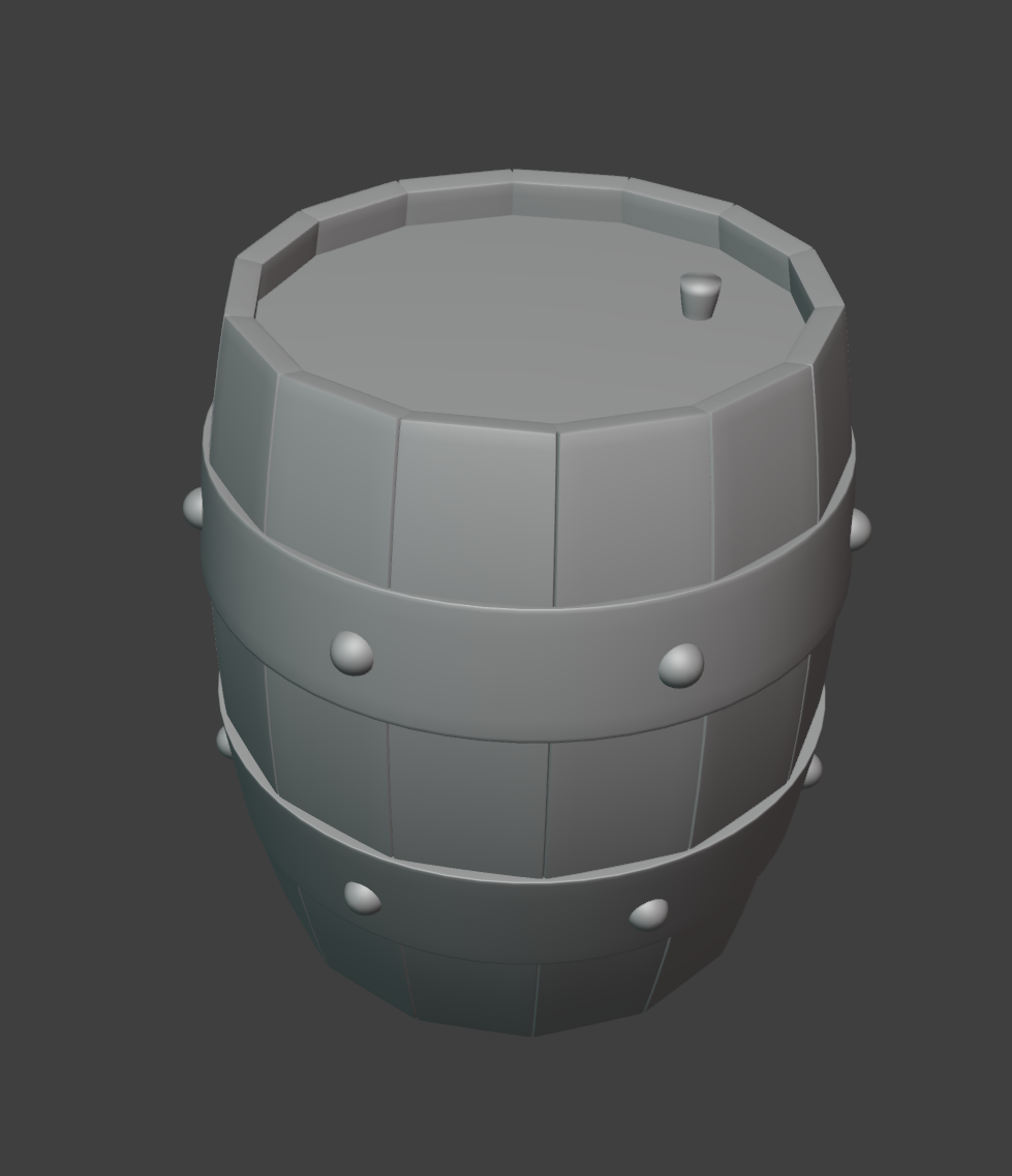 For the barrel, I decided to use Blender as my software because I don't have much time and the trial version of Zbrush is unfortunately time-limited. Blender itself caused me a lot of problems. It was very difficult to generate the planks of the barrel. The sculpting mode also caused me a lot of problems and couldn't be used properly. I tried to remesh, but that destroyed my entire model and the Dyntopo function didn't help me sculpt the model either. Even though I would have liked to complete this task I decided to skip it because with my limited time it would take too long to learn an additional program.