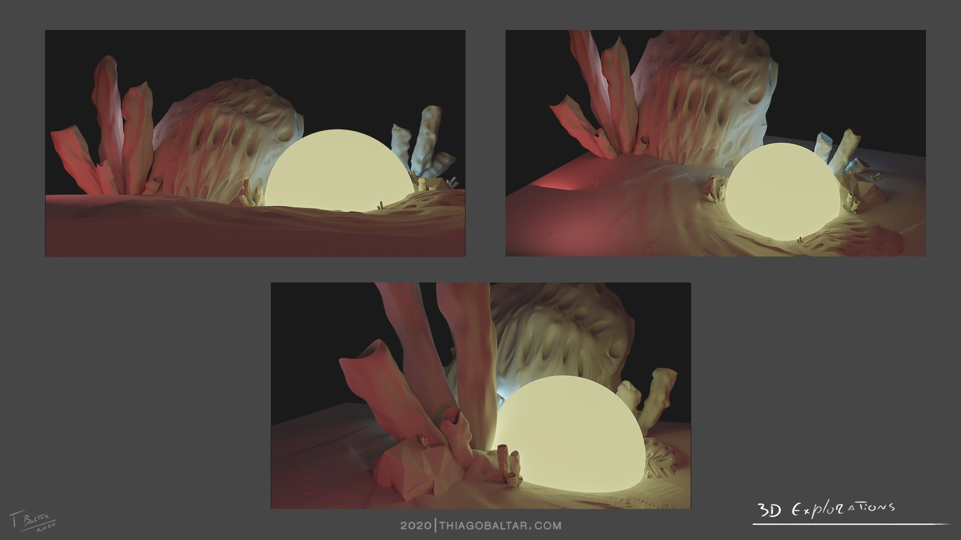 "This planet was once covered by water but today it is not like that anymore. Life forms have adapted or perished. Some species, in an instinct for self-preservation, have encased themselves in order to resist until some kind of help comes. My mission is to rescue remnants and give them a second chance."