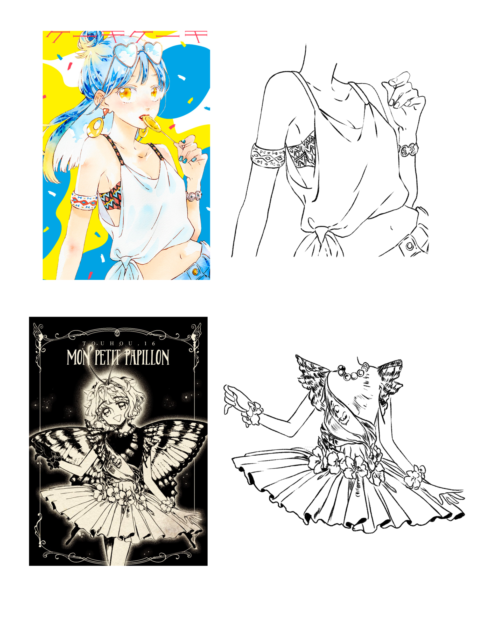 The other things I did during these weeks were less overwhelming. I was practicing with anatomy, I also tried to draw other types of faces, and I was experimenting with clothes.