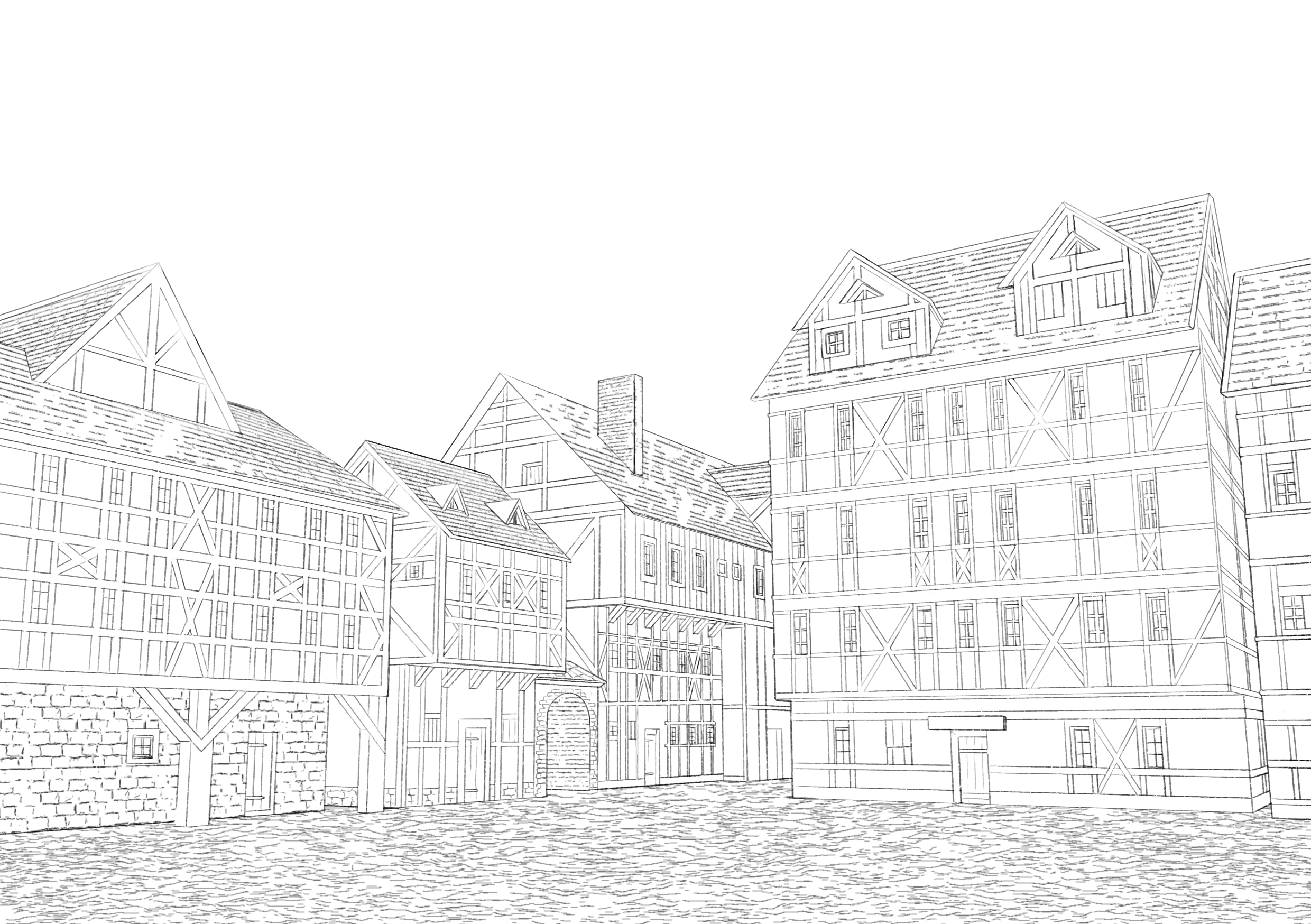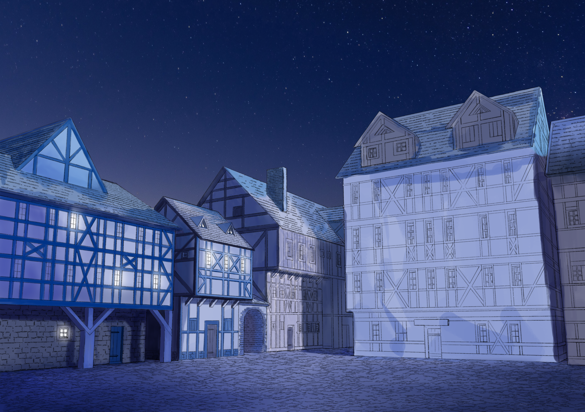 Not planning to pack as much detail as the original one, I kinda learned by now that with environments it's important to focus on forms and suggested detail, similar to how we focus on gestures for characters. Used a brush for the water and the kneeded eraser to give the lines a bit of an effect and a "cloud" brush for the clouds.