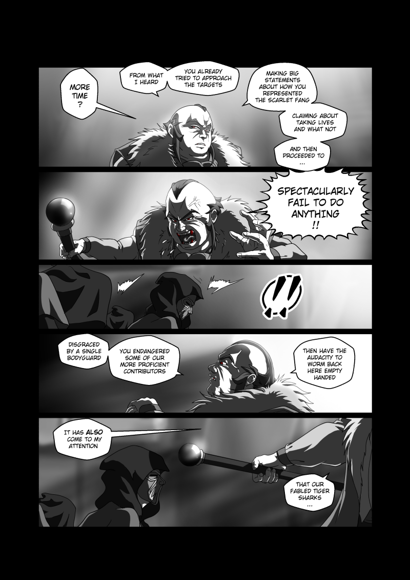 2) There's a lot more texture in some of these frames than I intended, but that's not a bad thing. I simply spent more time working on the page that I planned. Kept doing a bit at a time, 30 mins here, 30 mins there, before I knew it I had already spent 10 hours by the end, which is much more than I usually spend per page. Contrasts well with the previous pge which had less work on BGs due to focus on the characters and poses.