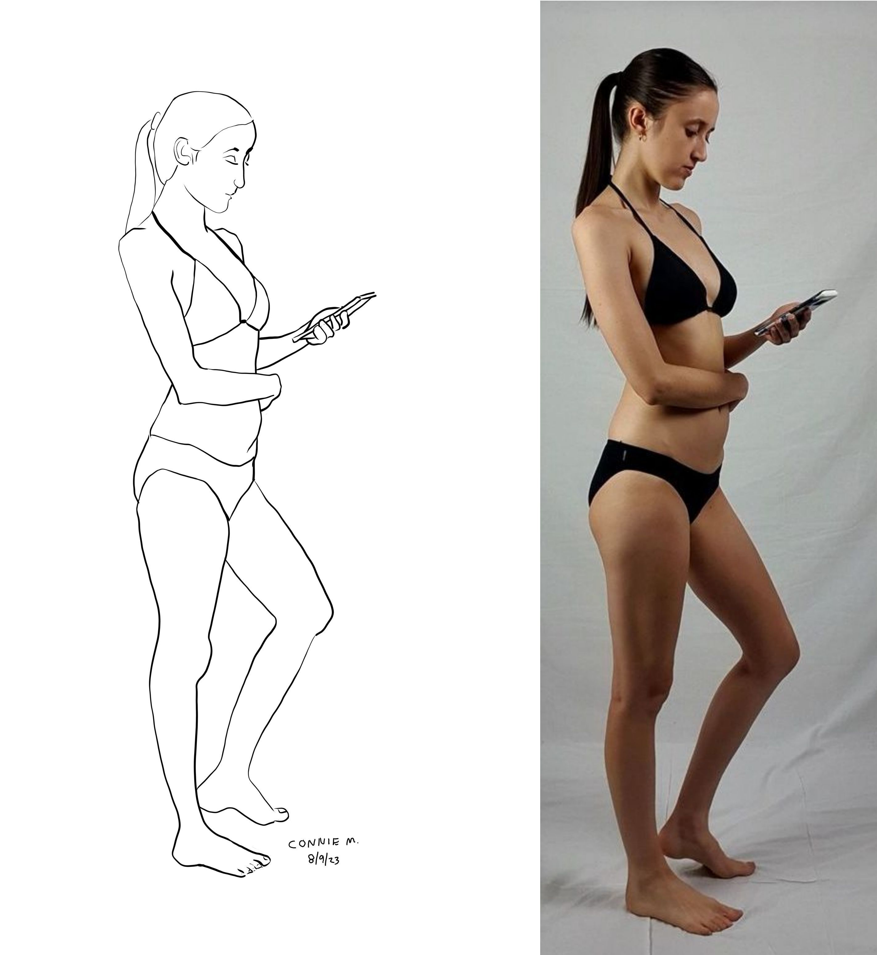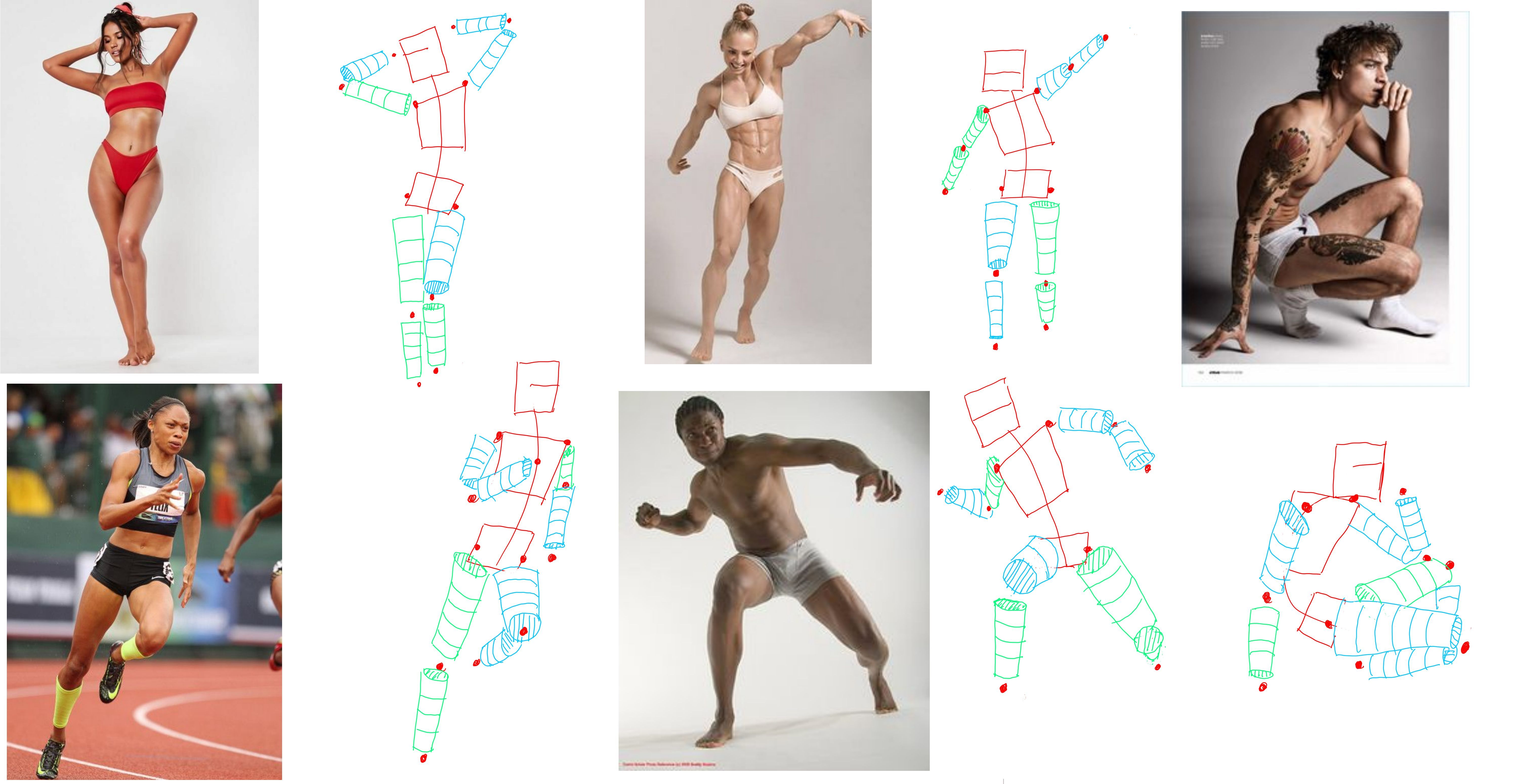 Also, I've been doing gesture drawing everyday. They are getting less chicken scratchy, but my drawings are pretty distorted. Here is a sample of one minute gestures: