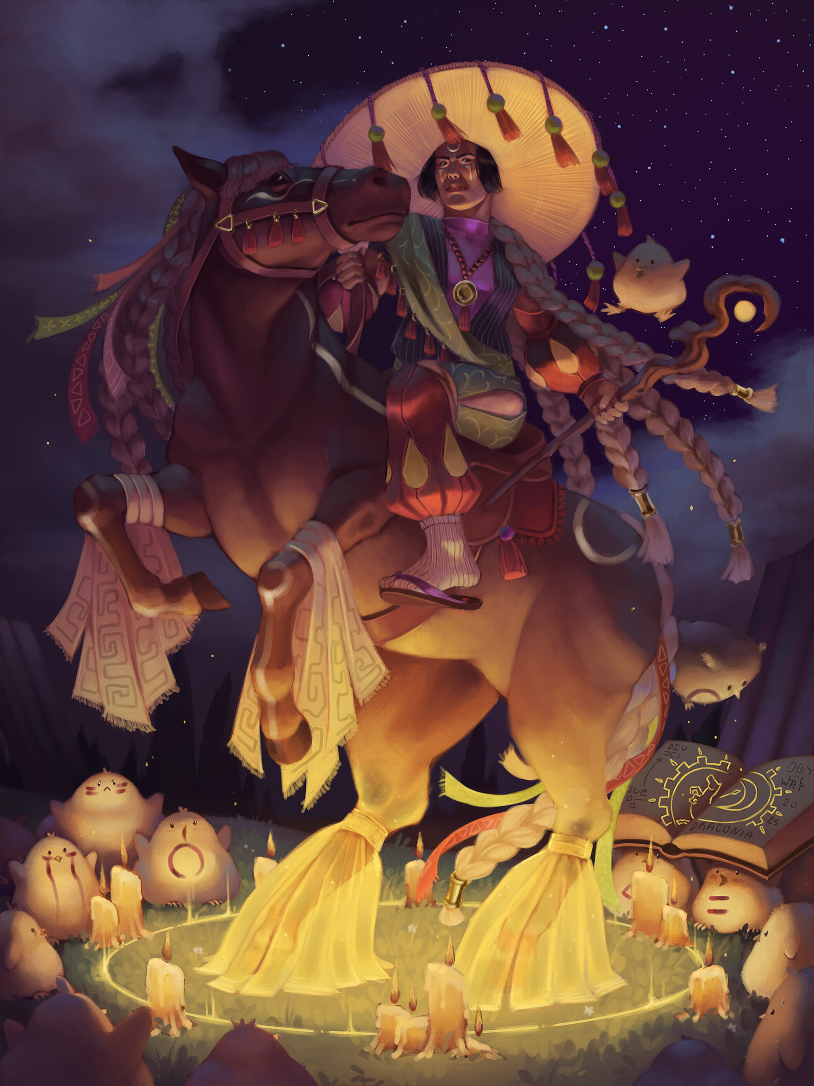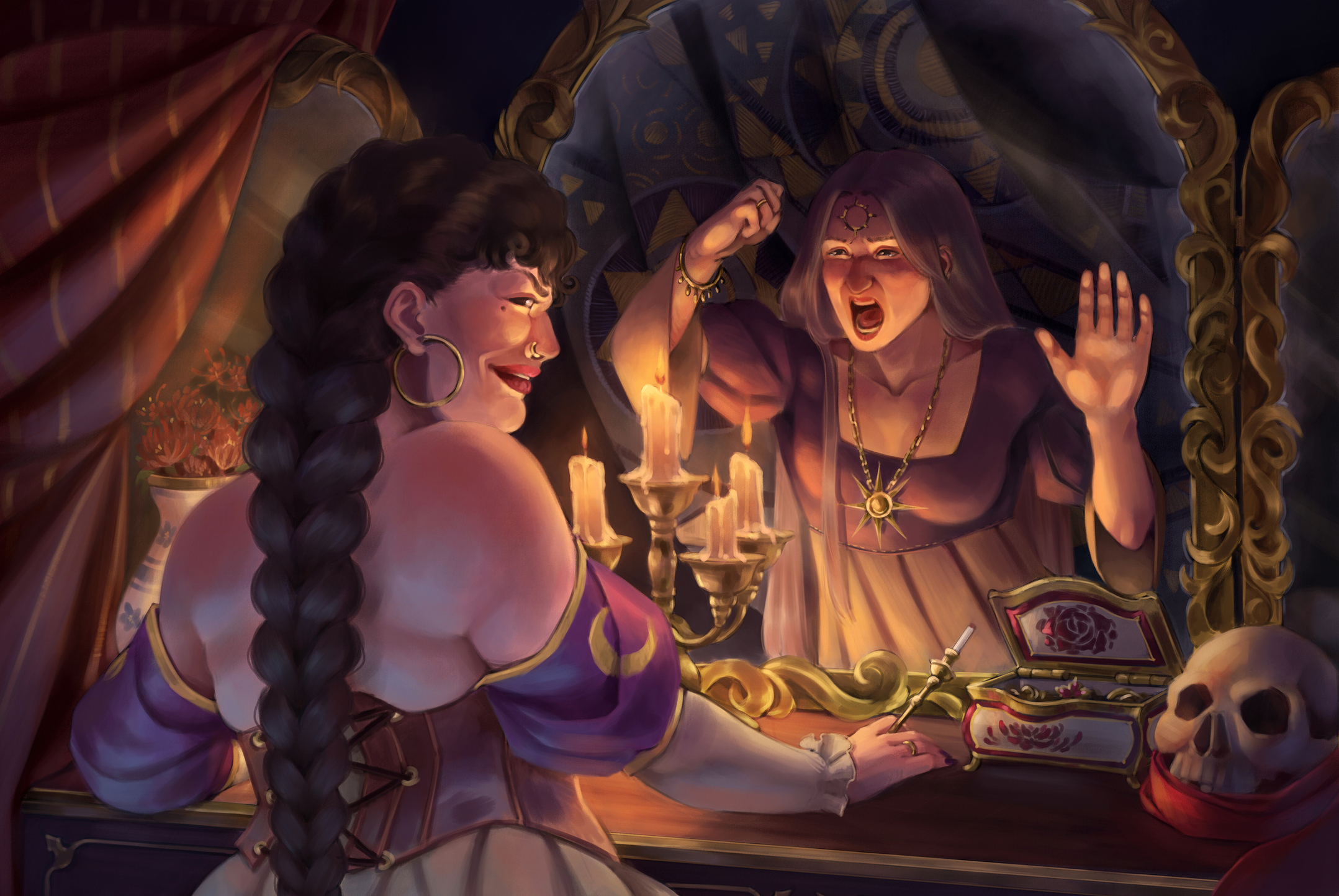 Hey, I'm part of a community of French artists in which we do weekly challenges, we choose three themes and we have to make an illustration on them, for this one the themes were "reflection - raven - shadow" but I'm thinking of including it in my worldbuilding, I don't know how yet haha