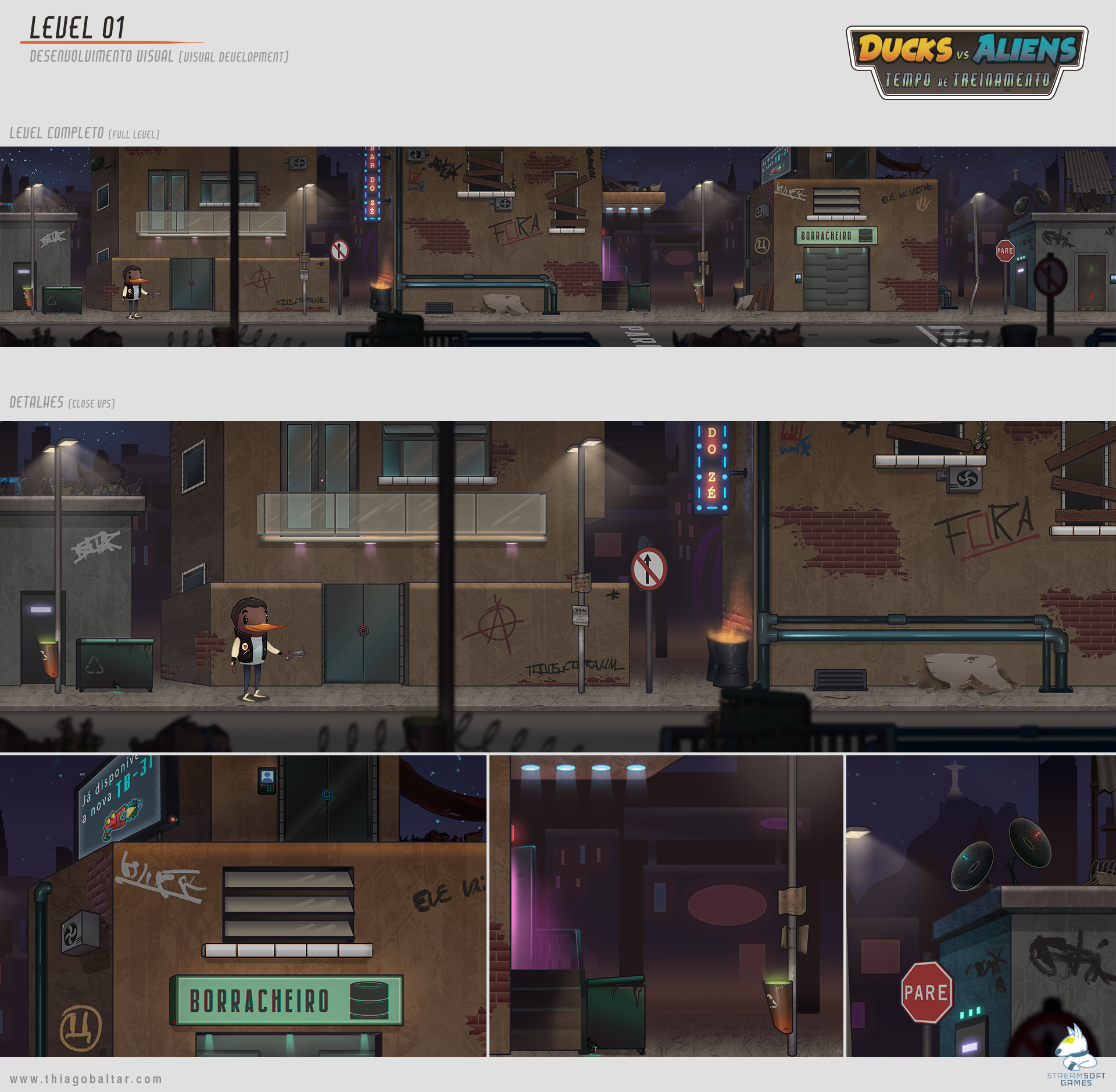 I was invited by Streamsoft Games to be the art director and lead artist for the upcoming mobile game called Ducks vs Aliens: Tempo de Treinamento.