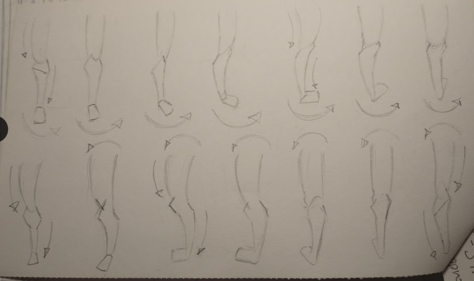 As far as drawing goes, I practiced my line art, followed by gesture drawing in 30, 60, and 90-sec intervals. Here, I tried to focus on drawing "the bean" for the torso. I ended my practice by drawing a leg from different angles since I was struggling with the curvature of the two limbs that make up the leg.