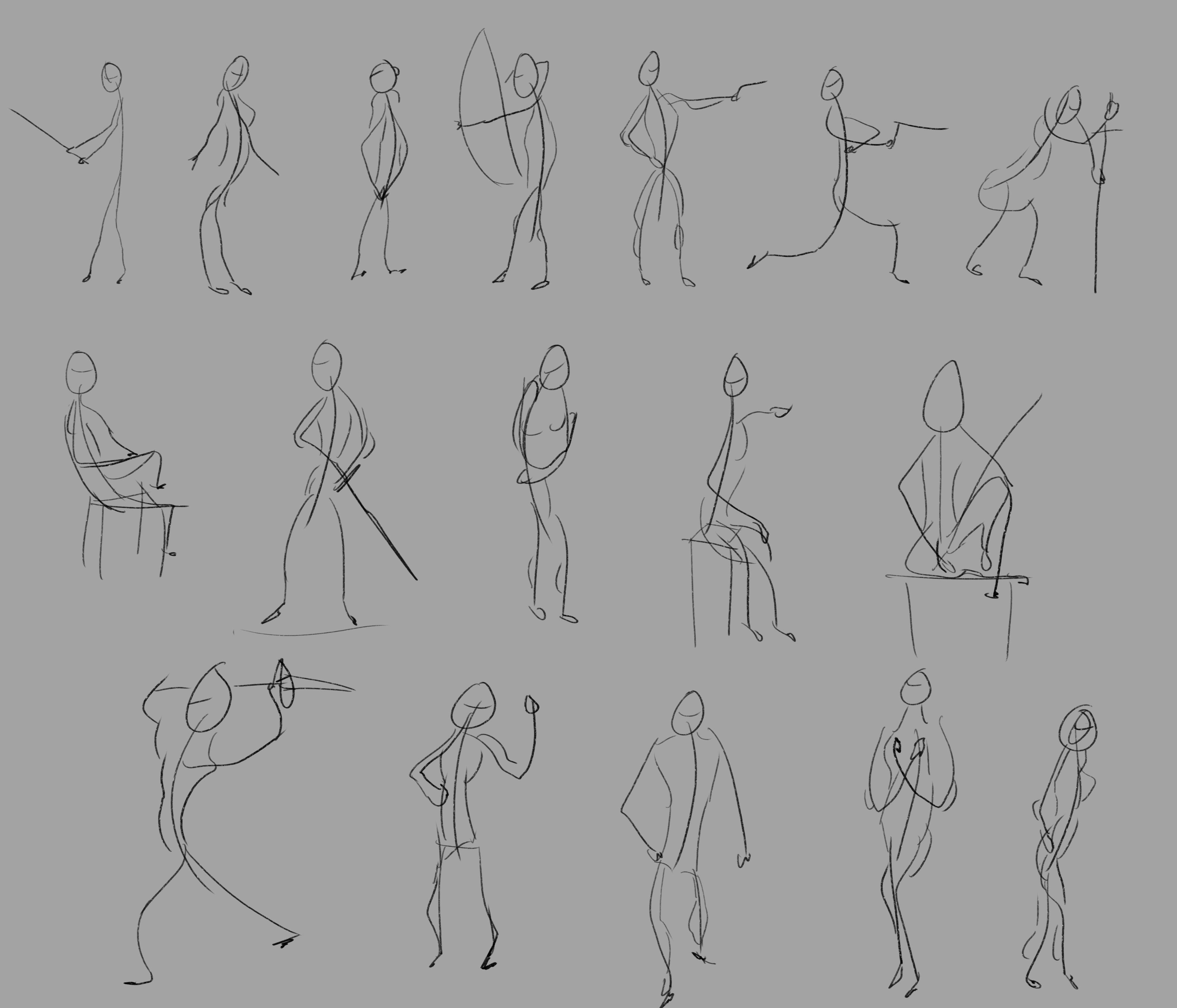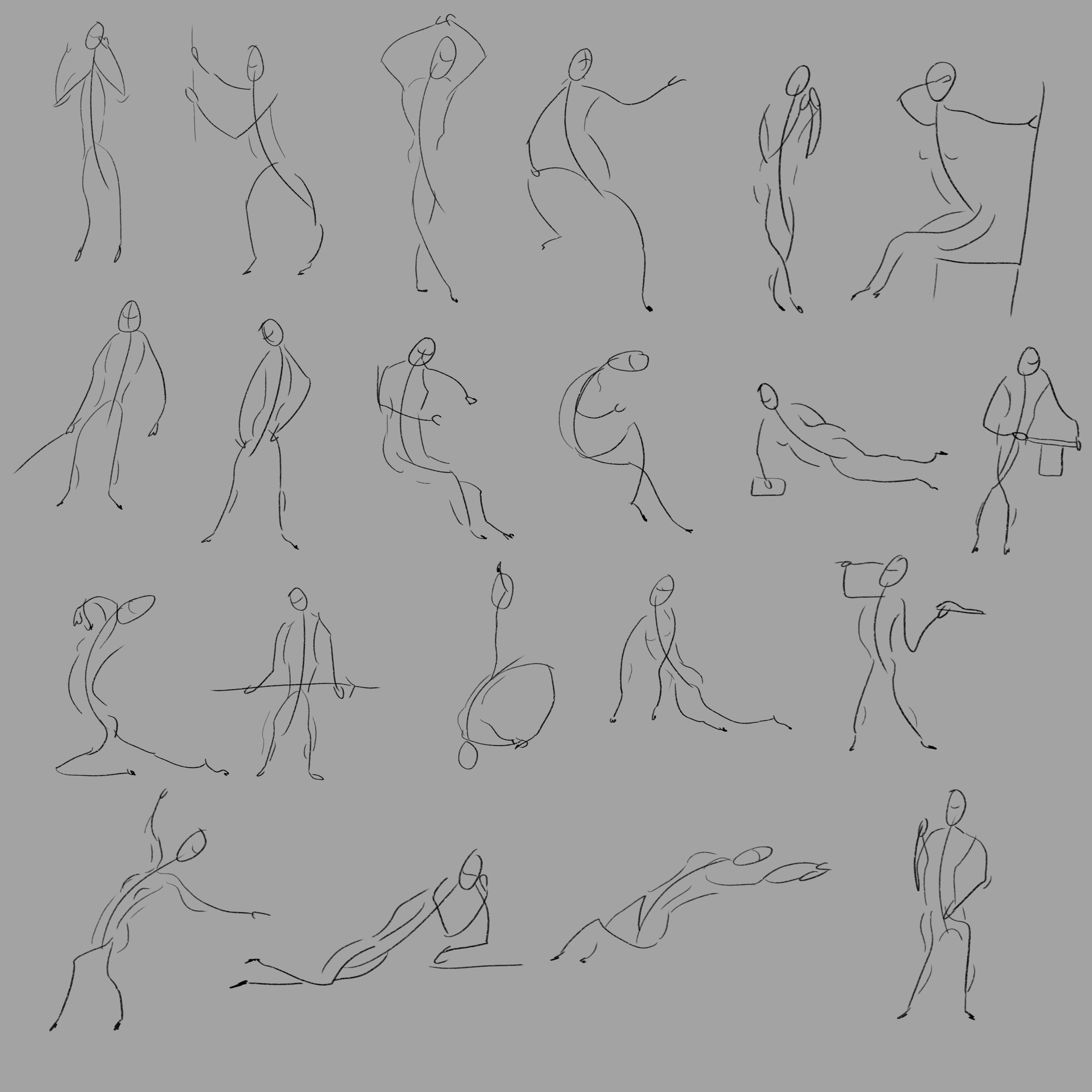 Try to have a nice flow and exaggerate the pose a lot because we usually tend to stiff the gesture when we draw.