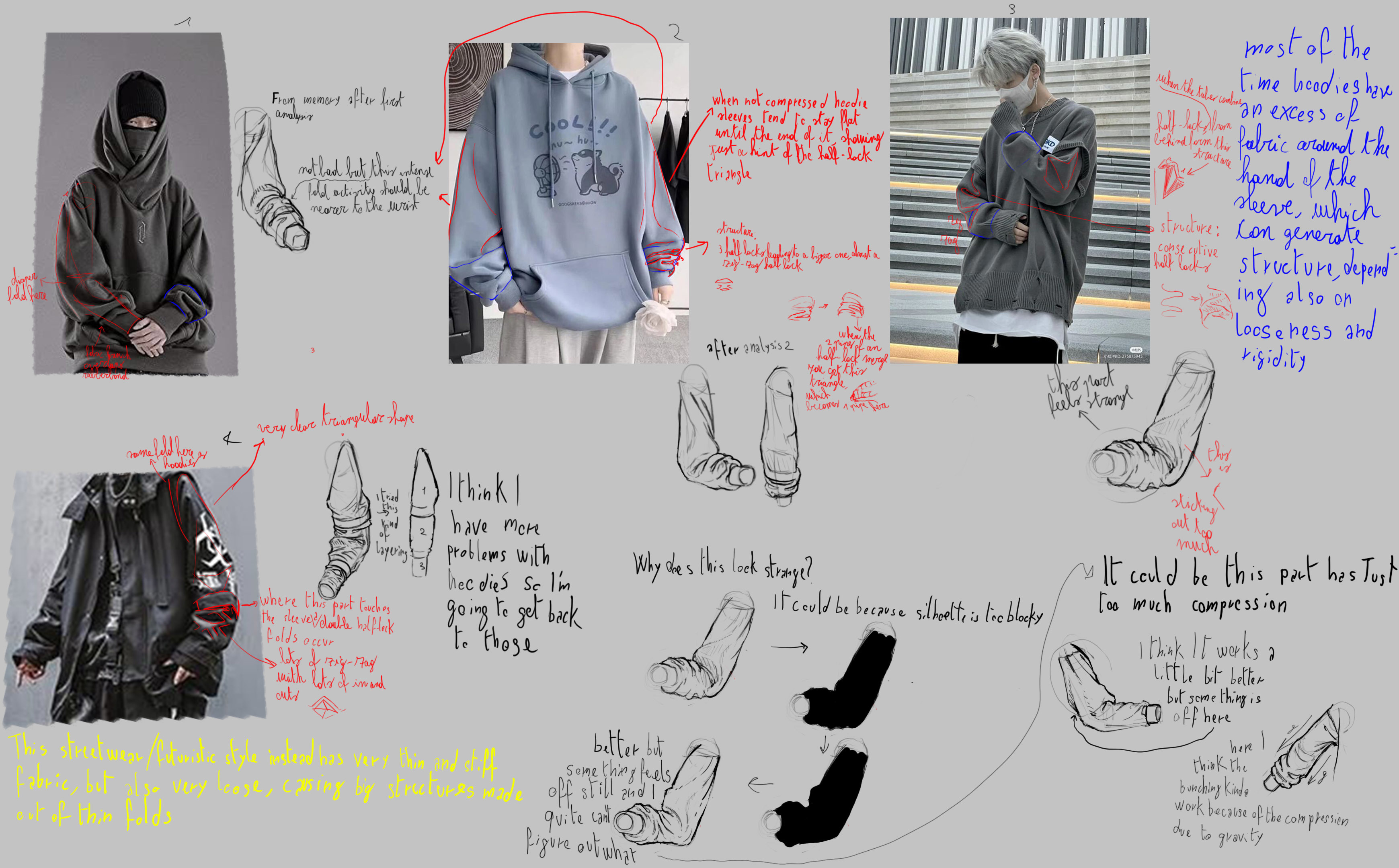 today's and yesterday's work: I got the feedback today and I think it was very useful because it reminded me of some things I forgot and helped me out with other ones. I then proceded to get back on construction a bit, which I plan to get it into my daily schedule because it feels really helpful, and then did on last lol design study where I pretty much went over all the aspect which were higlighted in the feedback i received. yesterday instead i went over some more folds and I think I now understand folds structure better