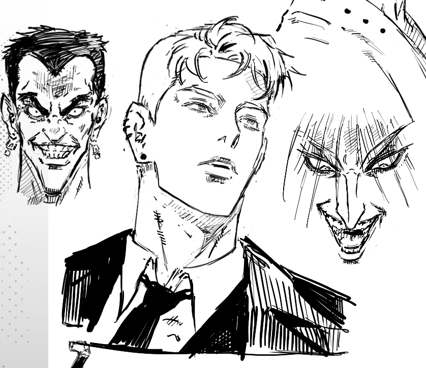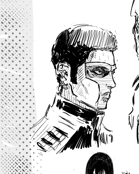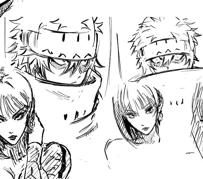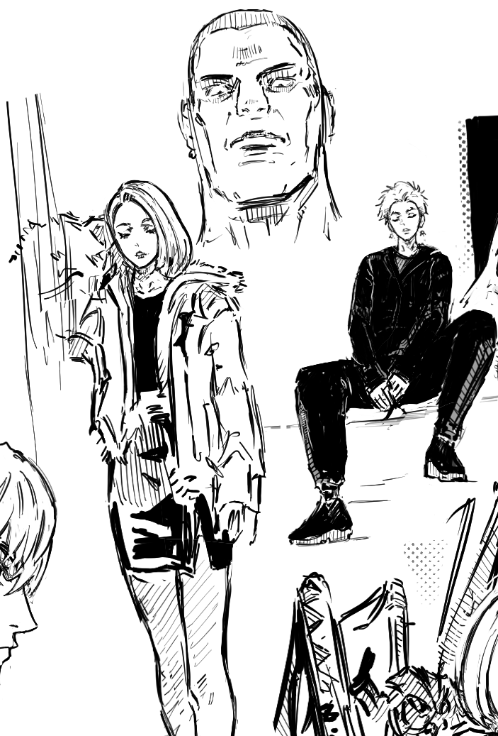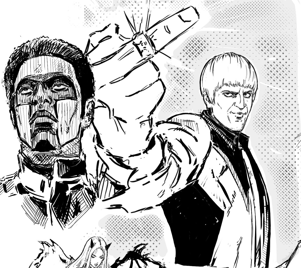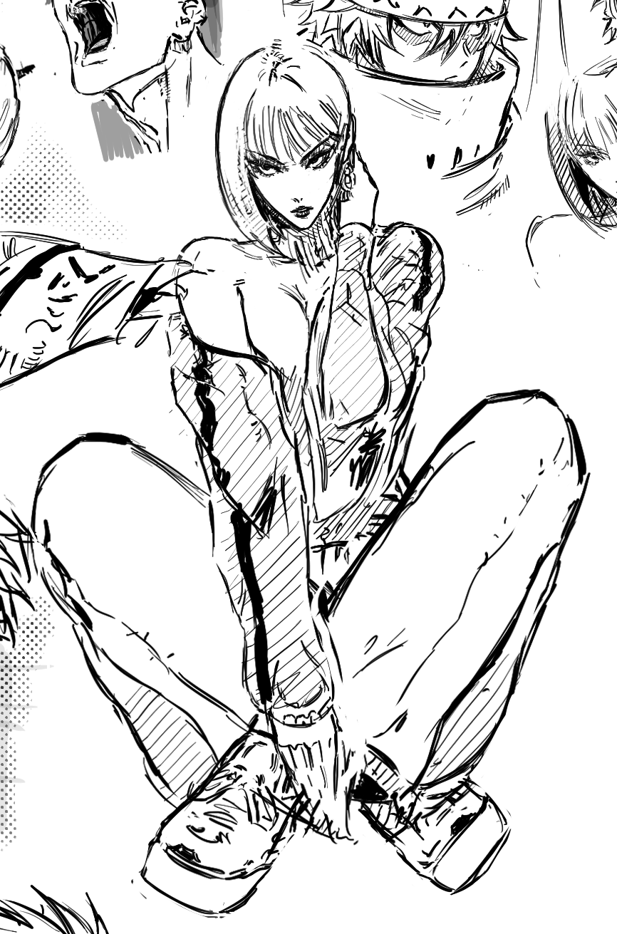 fanart, left face used ref, right pose semi ref'd, i couldn't get the foreshortening to look that good