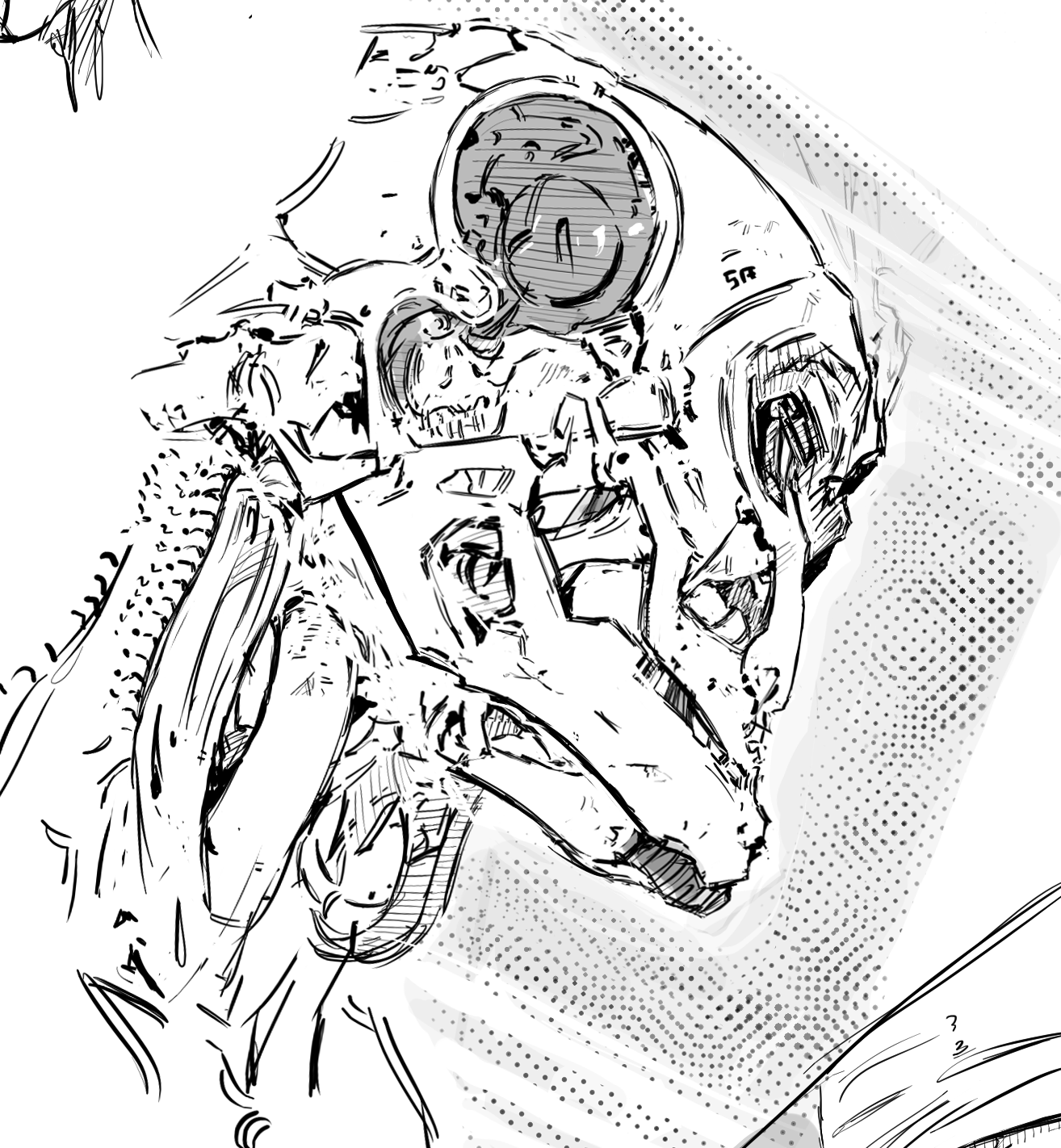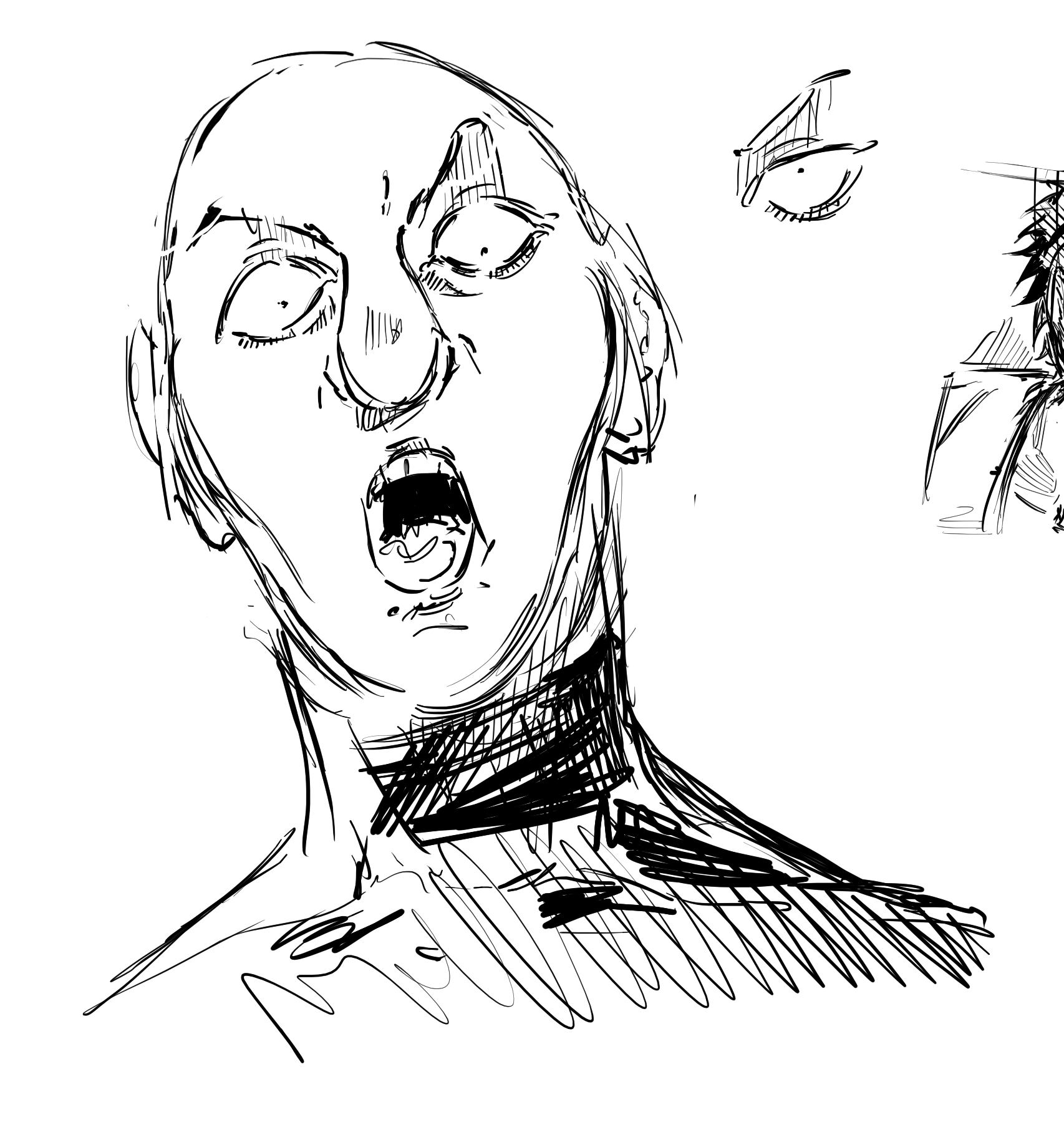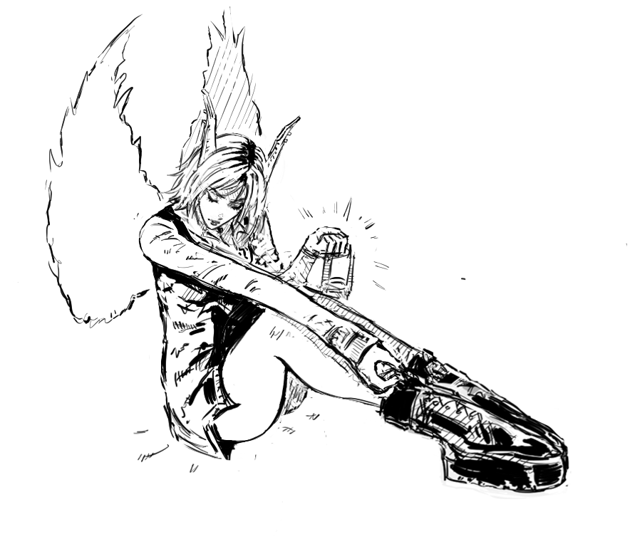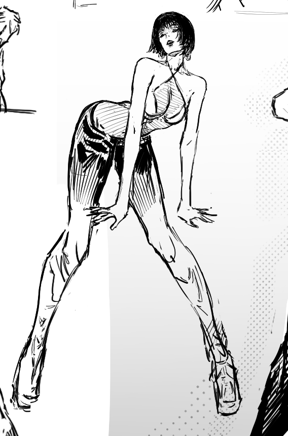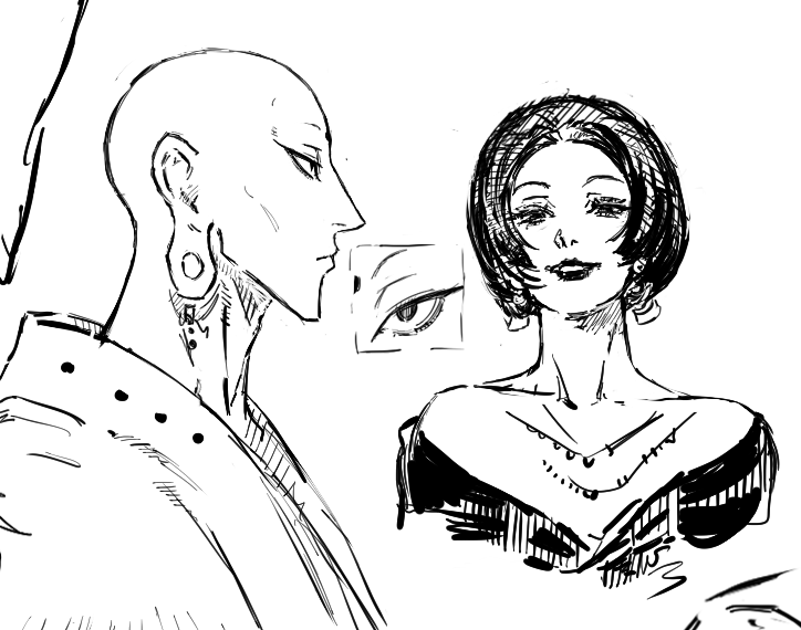 fanart, left face used ref, right pose semi ref'd, i couldn't get the foreshortening to look that good
