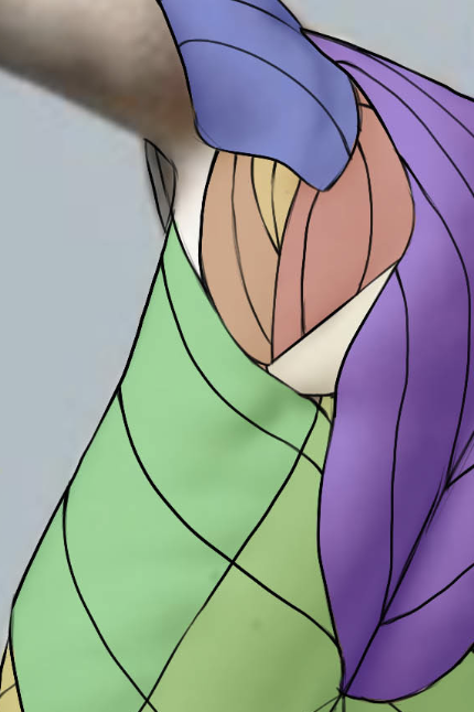 Damn, really nice job on those muscle maps, they are so clean and clear! Only things im not sure about are the last guy on the leftβs armpit and the latissimus insertion direction on the one on the right